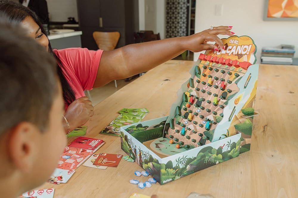 FUN GIFTS FOR KIDS: Oh No Volcano is an introduction to strategy Board Games and is an excellent gift for families and kids who love playing games. Ages 8+, 2-4 players.