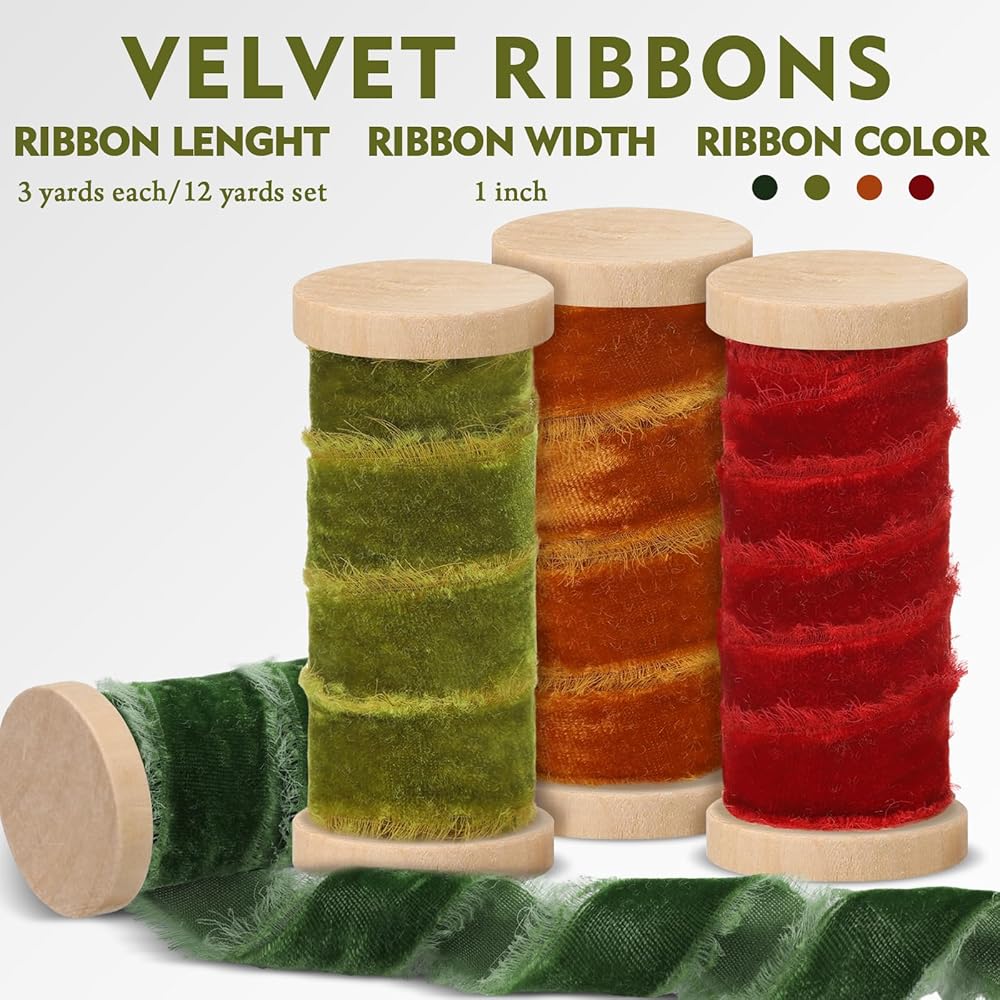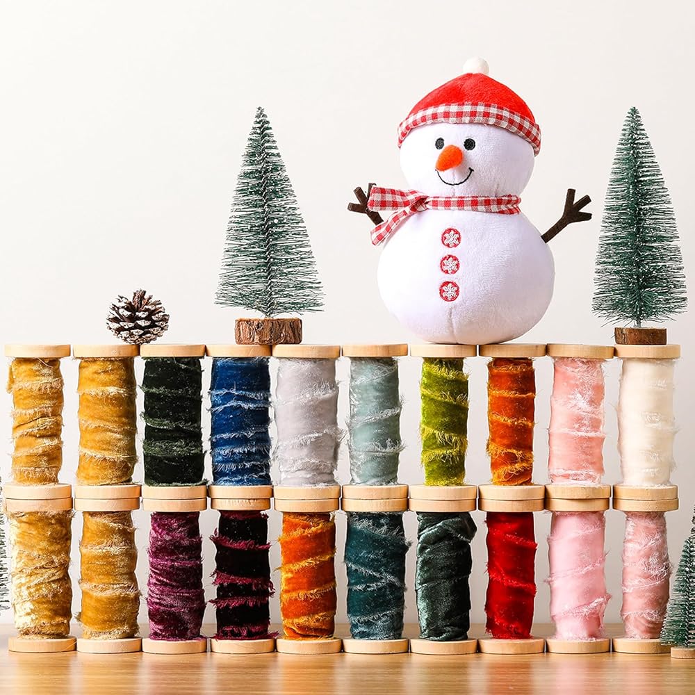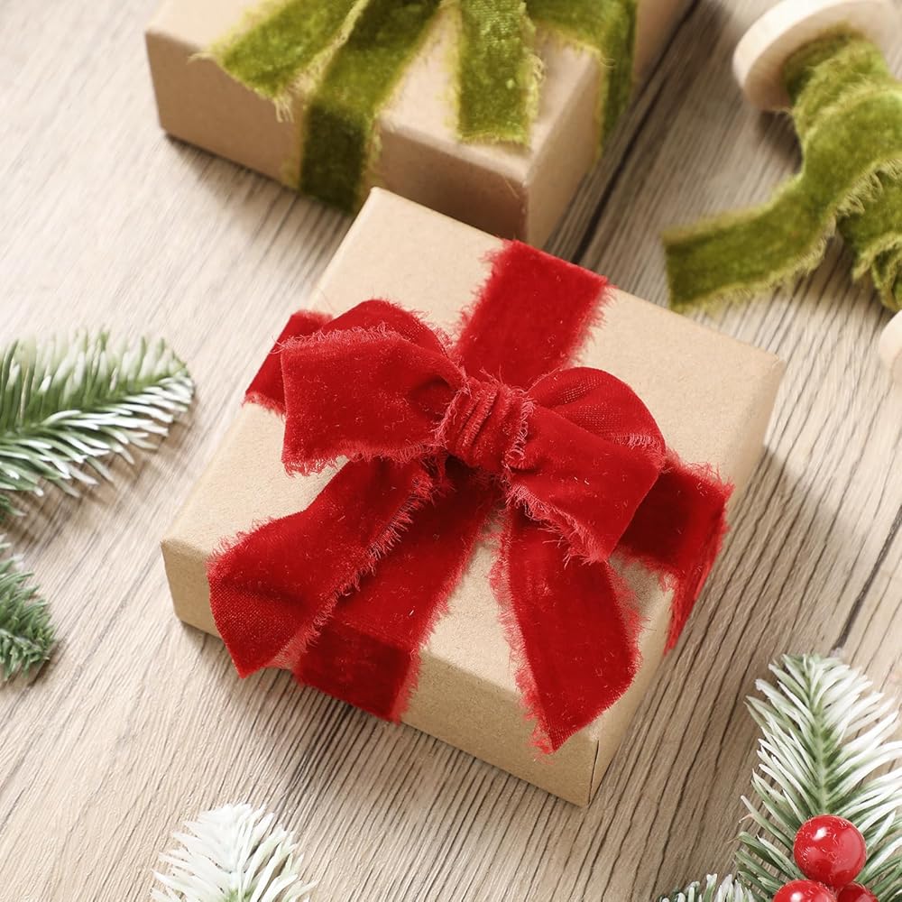 • Frayed Original Edges: our 1 inch wide velvet ribbon with delicately frayed edges, offers a soft, plush feel that adds a touch of elegance to any project; Its color shifts with light, enhancing the Christmas atmosphere, Ideal for gift wrapping, crafting, or home decor