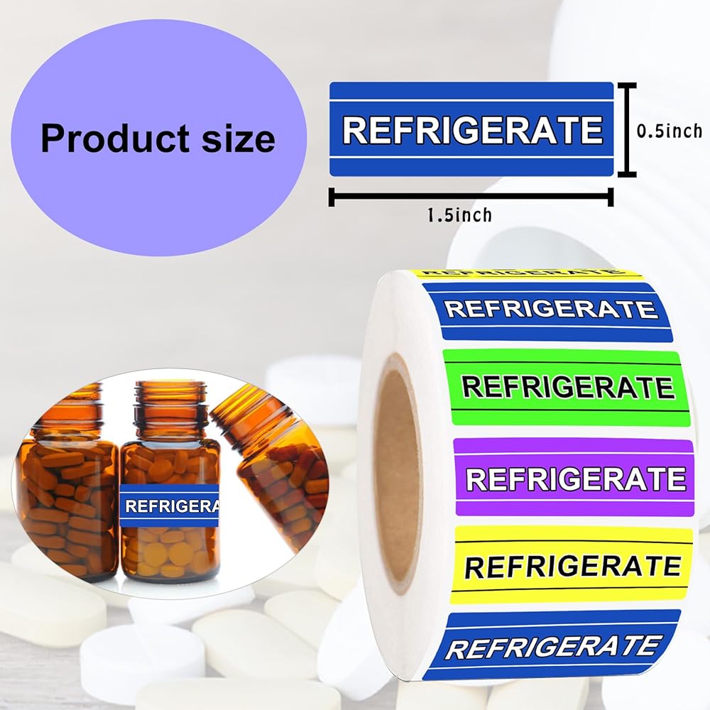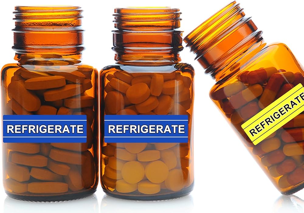 Self-Adhesive Keep Refrigerated Stickers for Prescription, Medicine, Drug Store.
