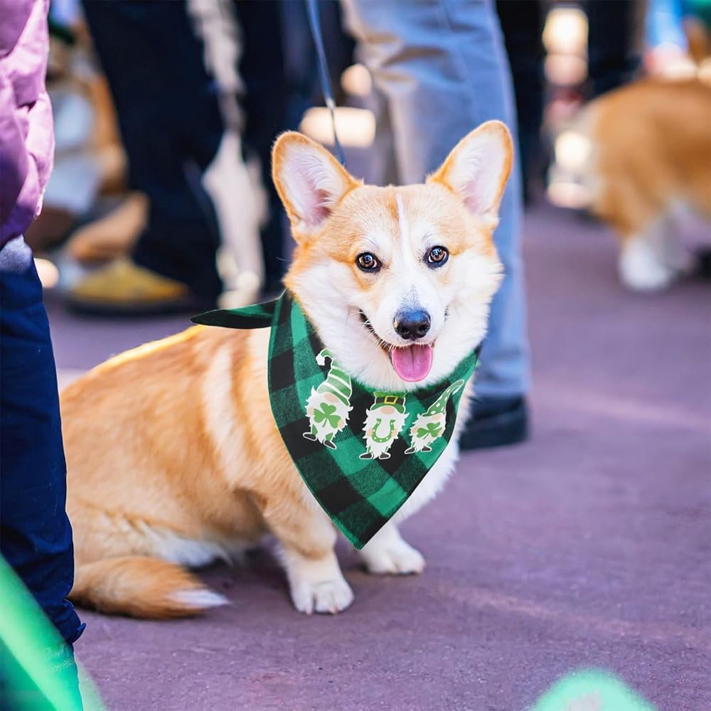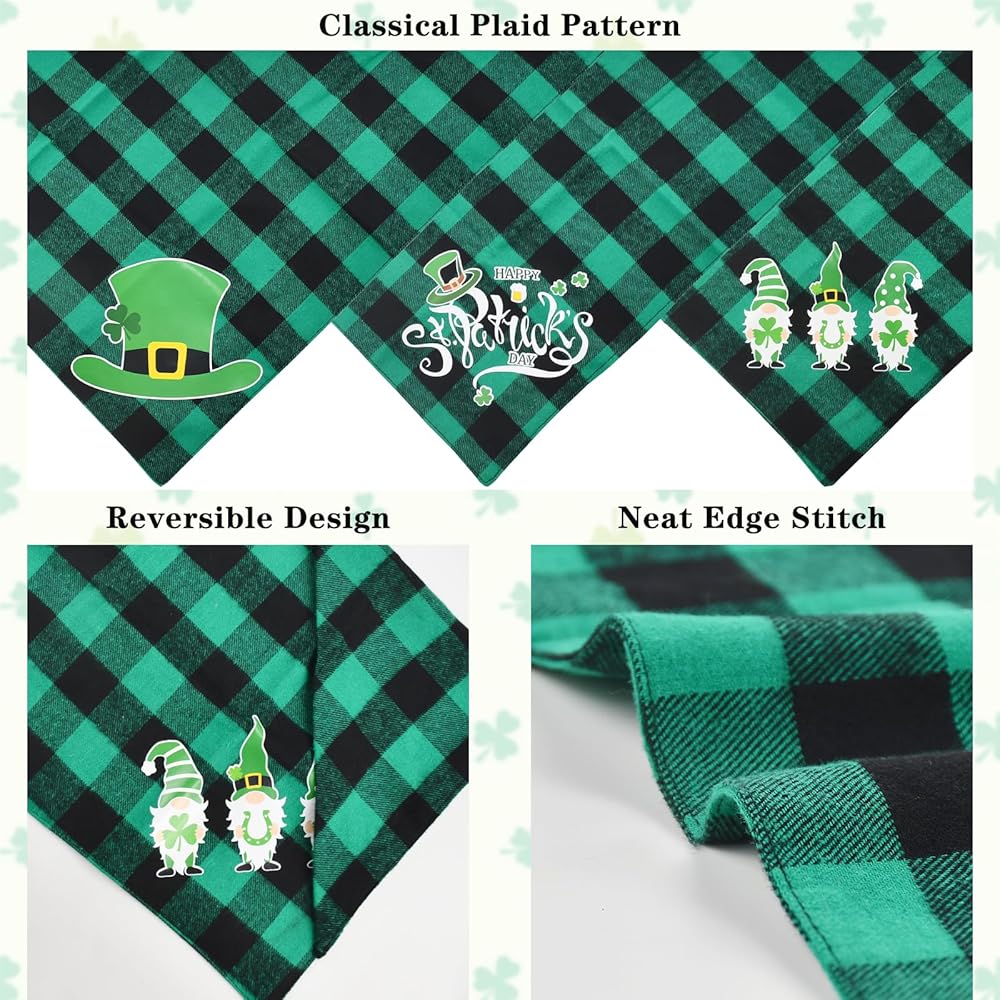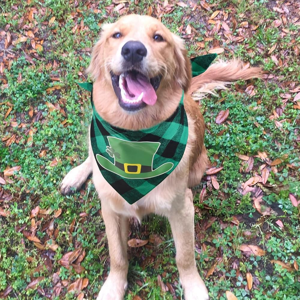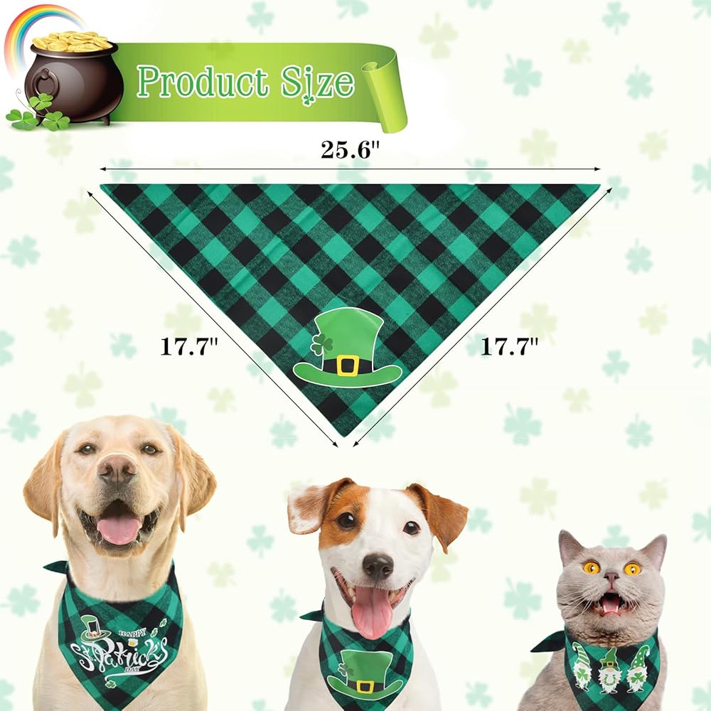 • St. Patrick's Dog Bandanas: These green plaid pet bandanas are specially designed for st. patrick‘s day. It's a combination of classic buffalo plaid and the Irish patterns such as shamrocks, green top hats, and leprechauns. Dress up your pets with these buffalo plaid scarves, give it a festive atmosphere.