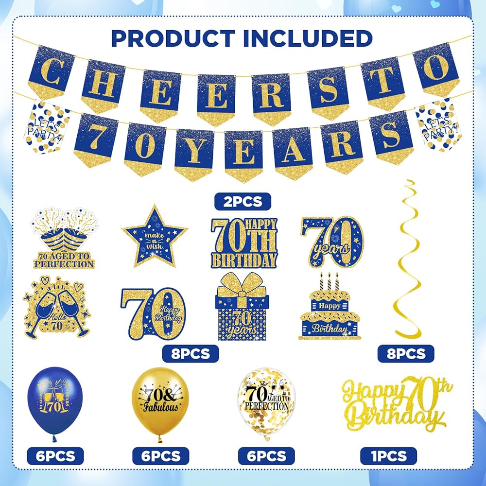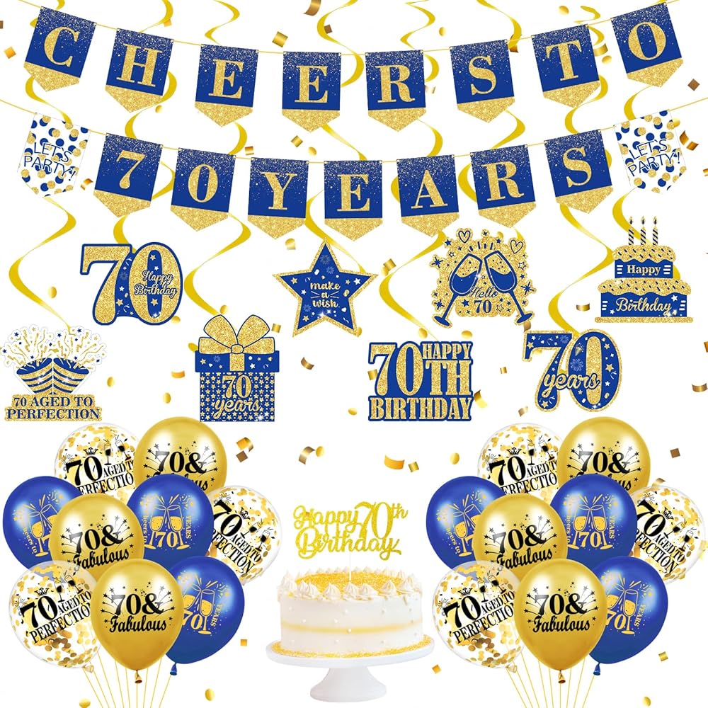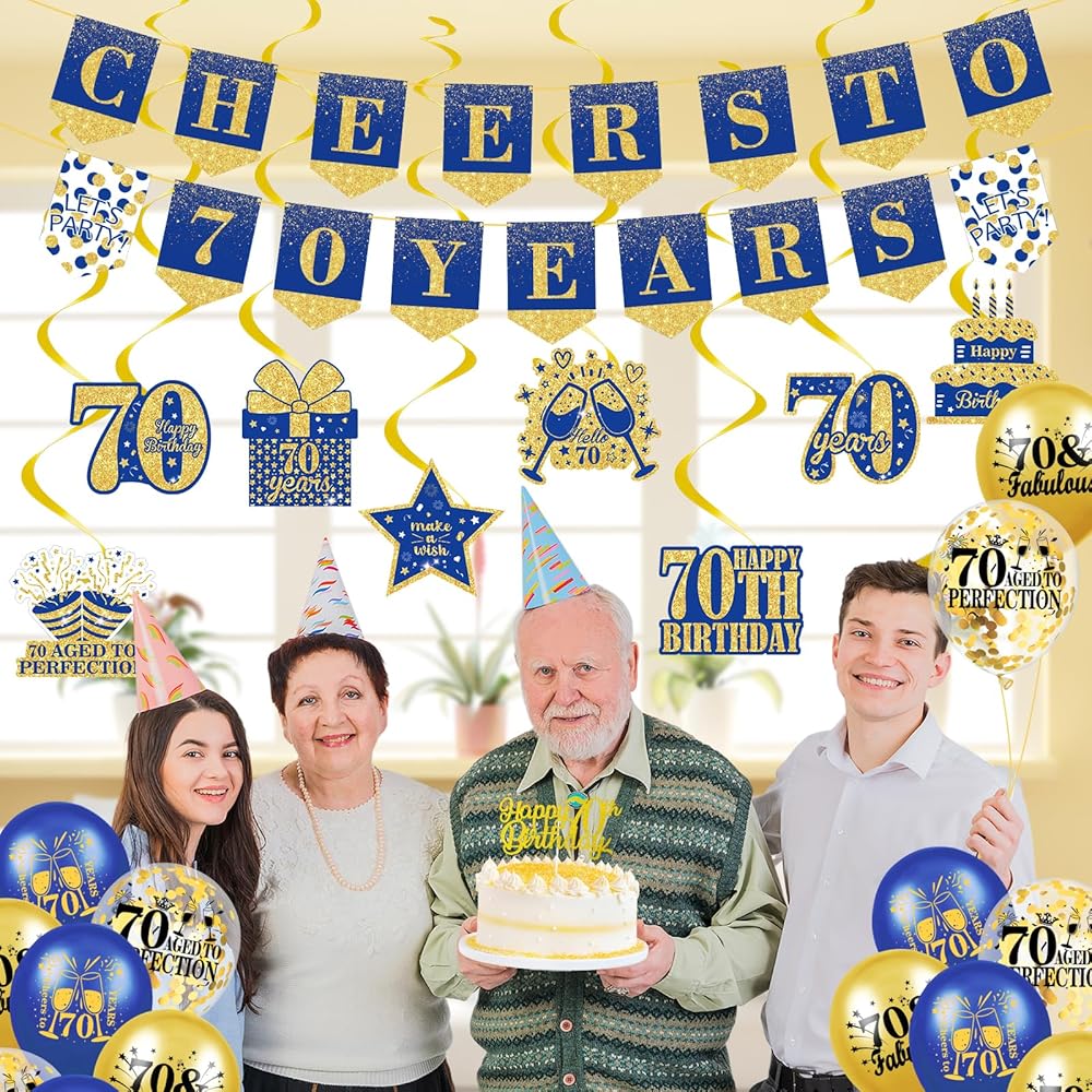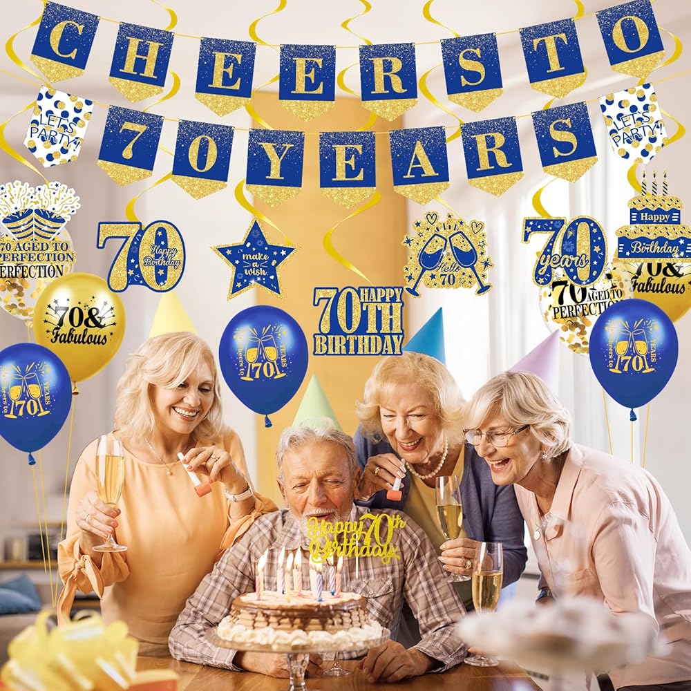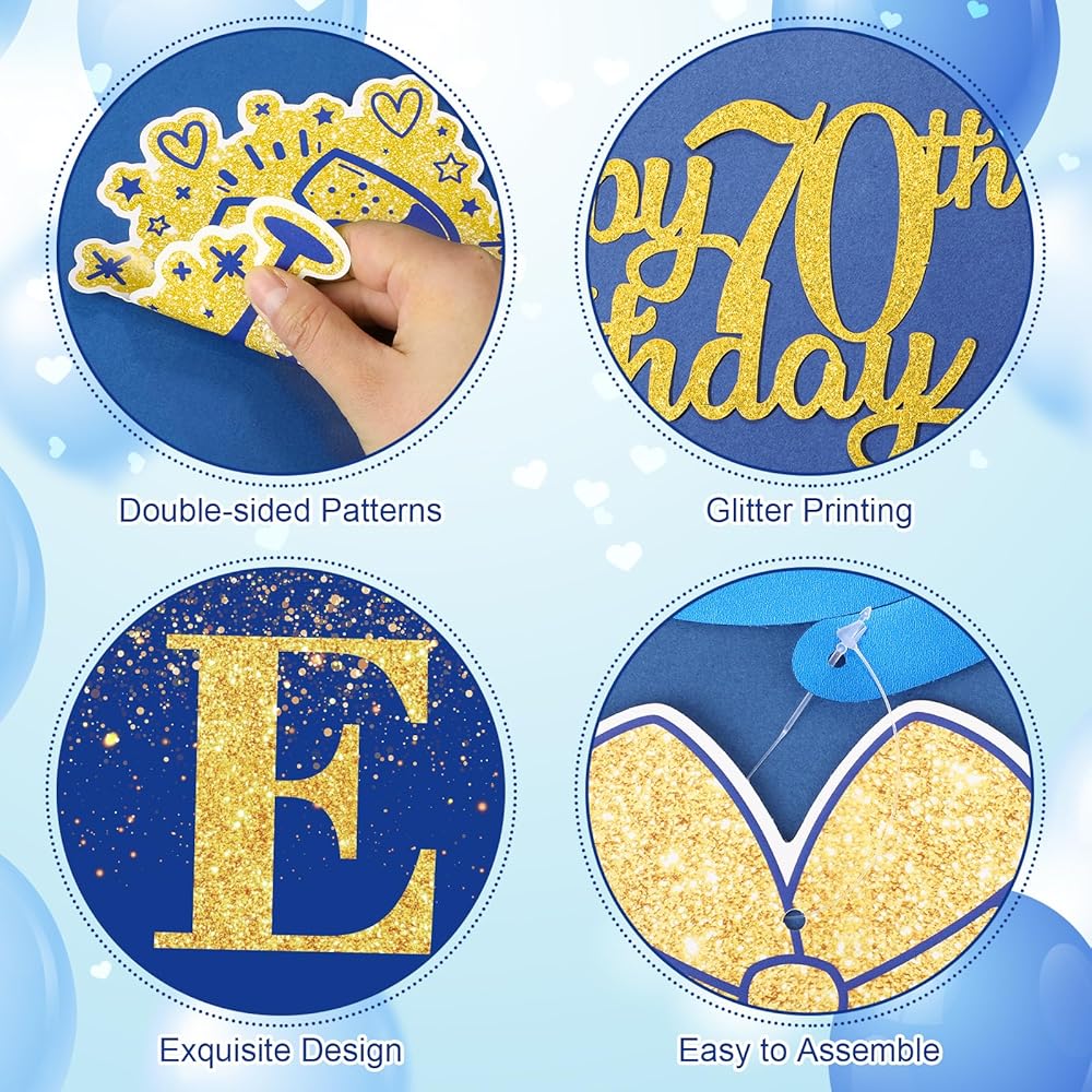 أزرق الذهب 70 ديكورات عيد ميلاد للرجال الأزرق الذهب الذهب 70 لافتة شنقا دوامات البحرية الذهب الأزرق الذهب 70 البالونات عيد ميلاد 70 كعكة عيد ميلاد للرجال 70