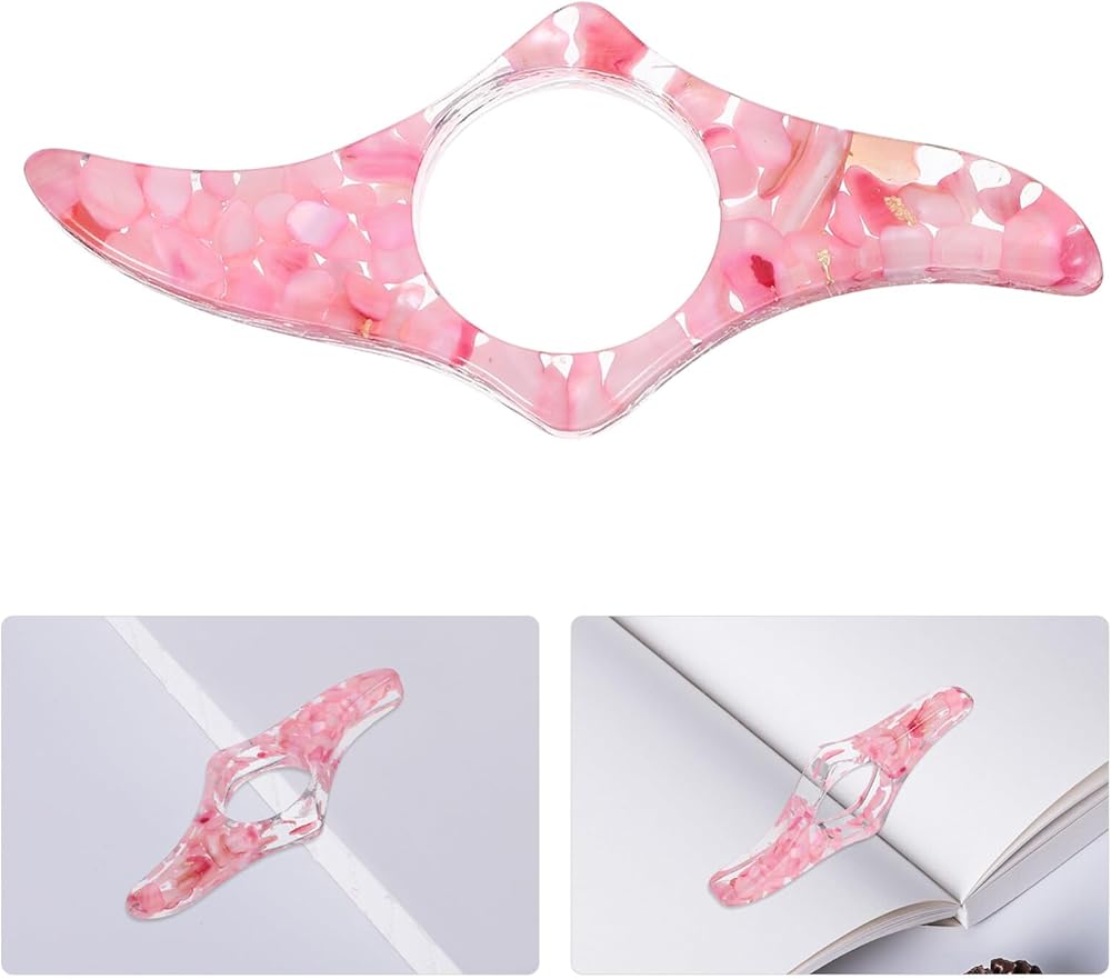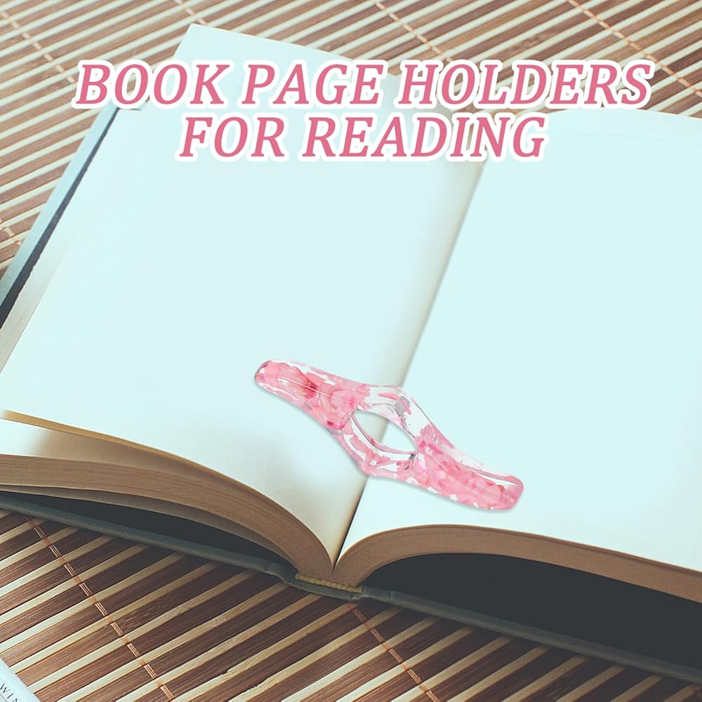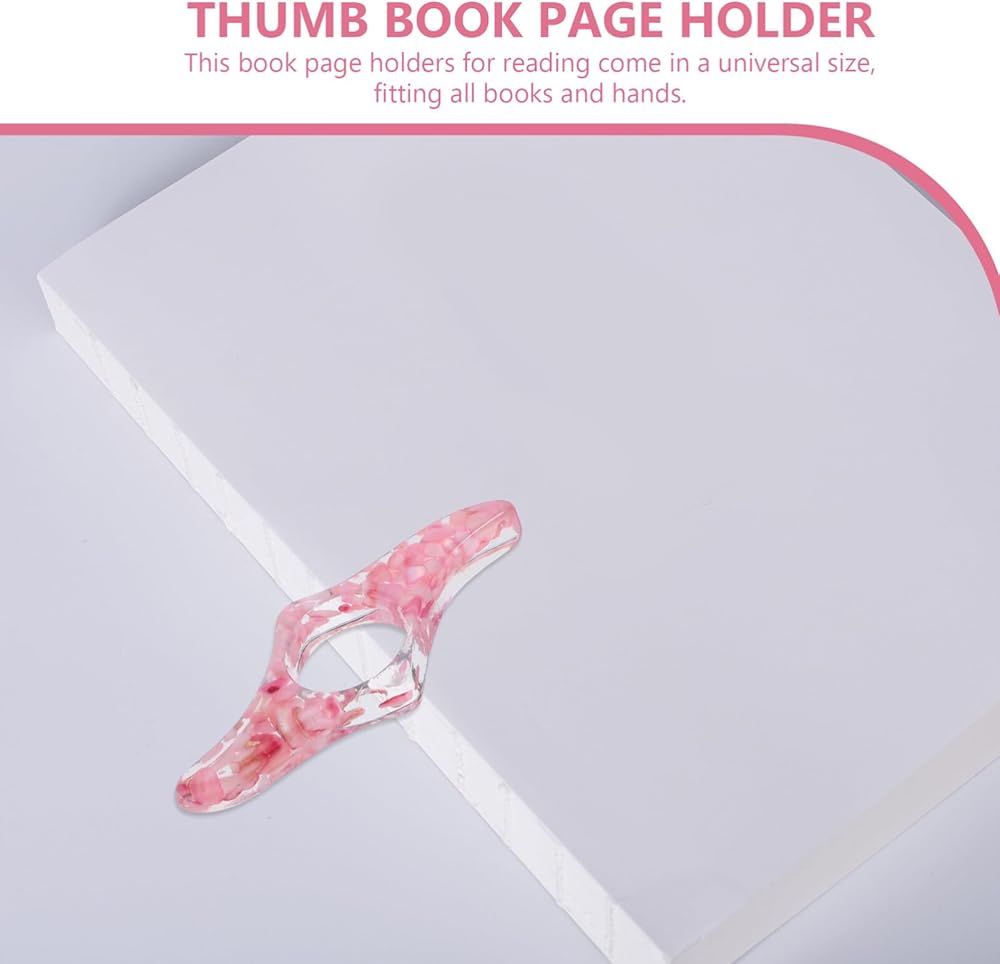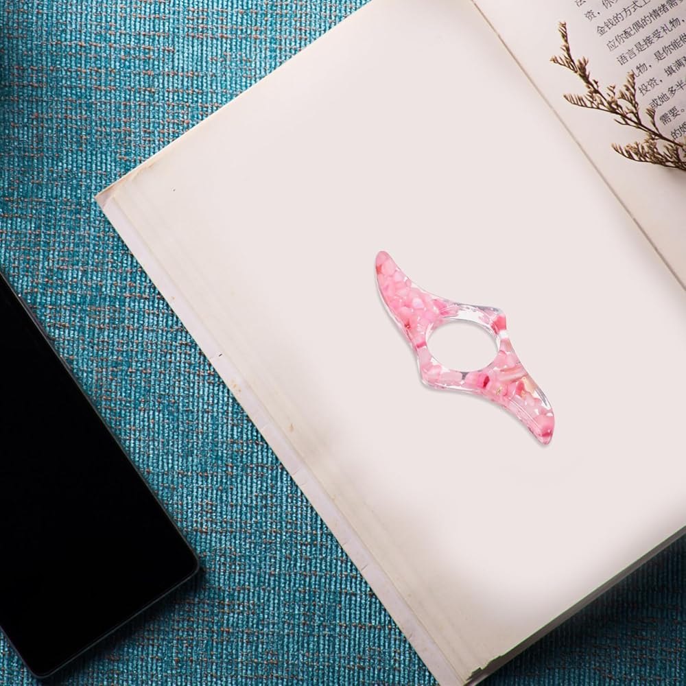 حامل صفحة كتاب Tofficu للقراءة: 1 PCS مصنوع يدويًا حامل صفحة صفحة - حامل صفحة حلقة الإبهام الشفافة - دعم الإبهام الكريستالي اللامع للقراءة بيد واحدة - وردي ، تصميم سبيكة