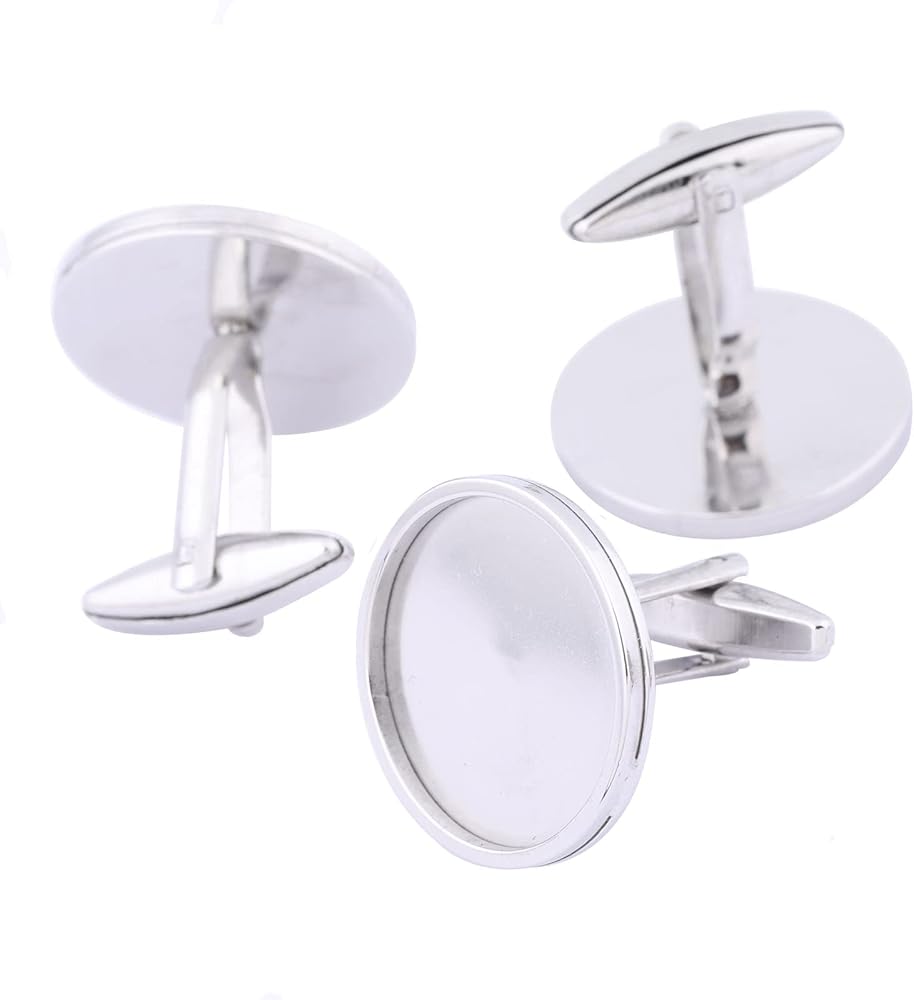 stainless steel cufflink bezel trays fit 20mm round cabochon cuff link base setting blanks