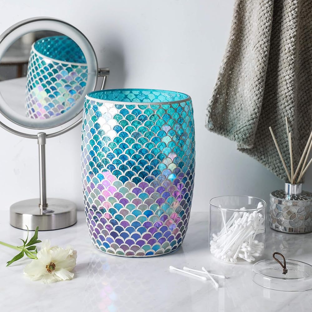 تصميم مستوحى من حورية البحر المذهلة: يمكن أن تتميز هذه القمامة الحمام حورية البحر بإنهاء فسيفساء أزرق نابض بالحياة ، مضيفًا لمسة سحرية إلى أي حمام أو غرفة نوم أو مساحة مكتبية مع ديكور ذات طابع محيطي