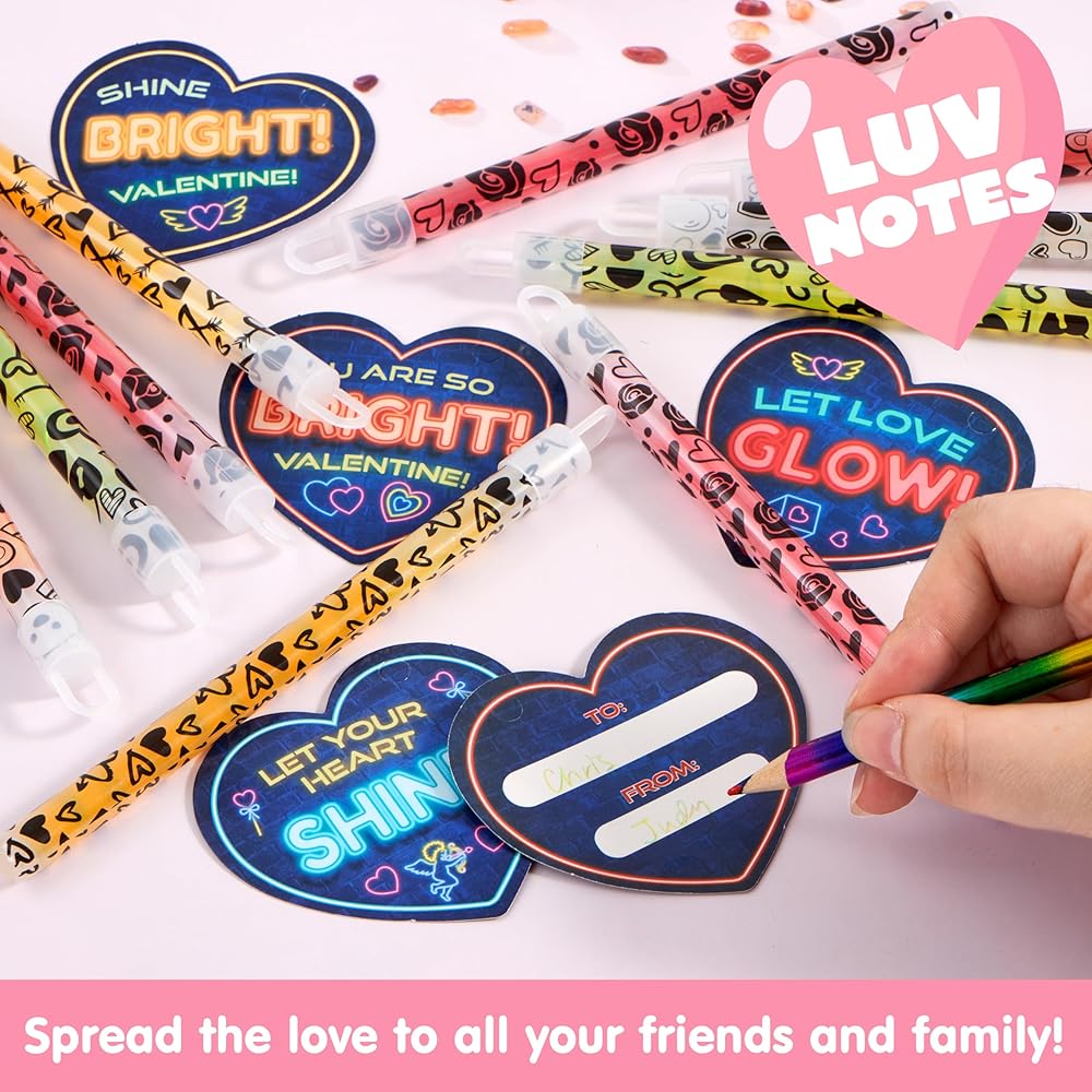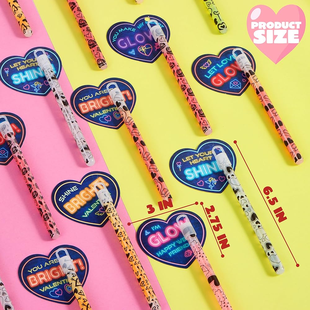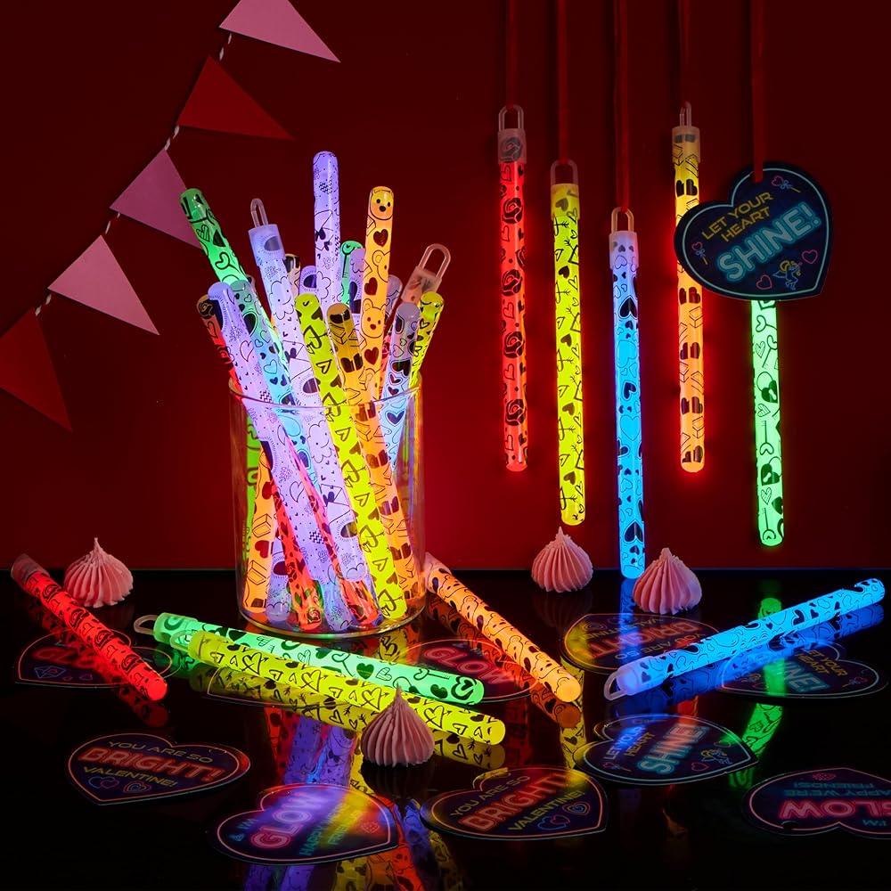 جوائز مكافأة العطلات: انشر توهج الحب مع هذه الوهج الكبير في العصي المظلمة ، مقترنة بطاقات القلب ، مما يجعلها جوائز مكافأة العطلات للأطفال لاعتزازها.