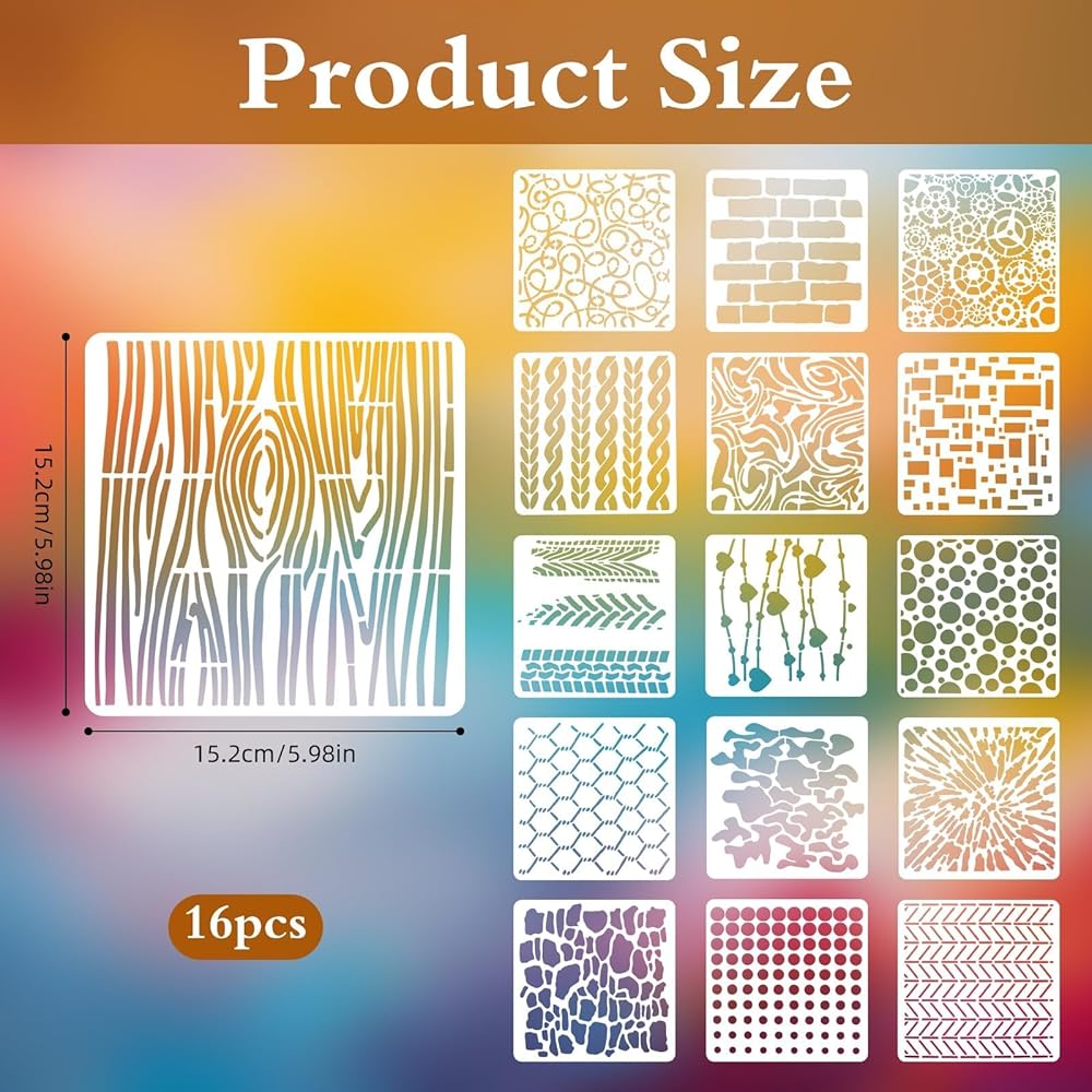 • Creative and Customizable: These 16PCS graffiti stencils (15.2x15.2cm) are perfect for unleashing your creativity. Each stencil is 6 inches in size, making them ideal for a variety of DIY projects. The stencils are reusable, allowing you to create multiple designs without the need for additional purchases. You can customize the stencils to match your desired design, making them perfect for personalized projects.