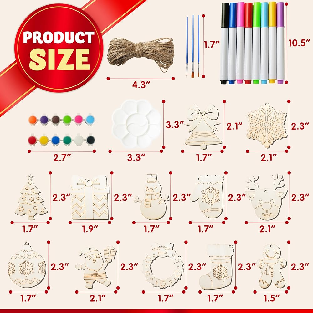 جودة قوية ودائمة: نحن دائمًا على استعداد لتقديم تجربة ممتازة! مصنوعة من الحلي من الخشب المتميز وسلسلة القنب القوية ، إلى جانب 8 علامات ملونة تقليدية ، و 12 لونًا مختلفًا من الطلاء الأكريليكي (5 مل لكل منهما) ، و 3 أحجام مختلفة من فرشاة الطلاء ، ولوحة من 9 شباك ، وتضمن الجودة المتينة مدى الوقت الرائع الذي يمكن أن ترافقك فيه زخارفك!