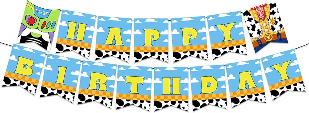 Suitable Measurement: You will receive 1 piece of Cartoon Toy Happy Birthday Banner, Each Cartoon Themed Happy Birthday Banner pennant banner includes 15 pieces of cards and 2 ribbons (each ribbon is approx 8.2 ft). Each Cartoon Toy Happy Birthday Party Banner card has a size approx 7''×5.5''. The appropriate sizes make them easy to hang on different occasions, portable to carry and convenient to store without occupying much space.