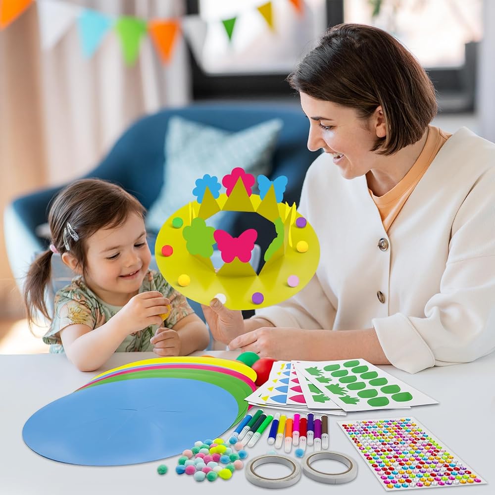 • Personalized flower crown: Our spring crown set includes 24 paper cuts, 24 pattern paper cuts, 24 colored pens, 100 POMPOM, 1 diamond sticker, and 4 rolls of double-sided tape, which is sufficient to meet your personalized DIY needsPersonalized flower crown: Our spring crown set includes 24 paper cuts, 24 pattern paper cuts, 24 colored pens, 100 POMPOM, 1 diamond sticker, and 4 rolls of double-sided tape, which is sufficient to meet your personalized DIY needs