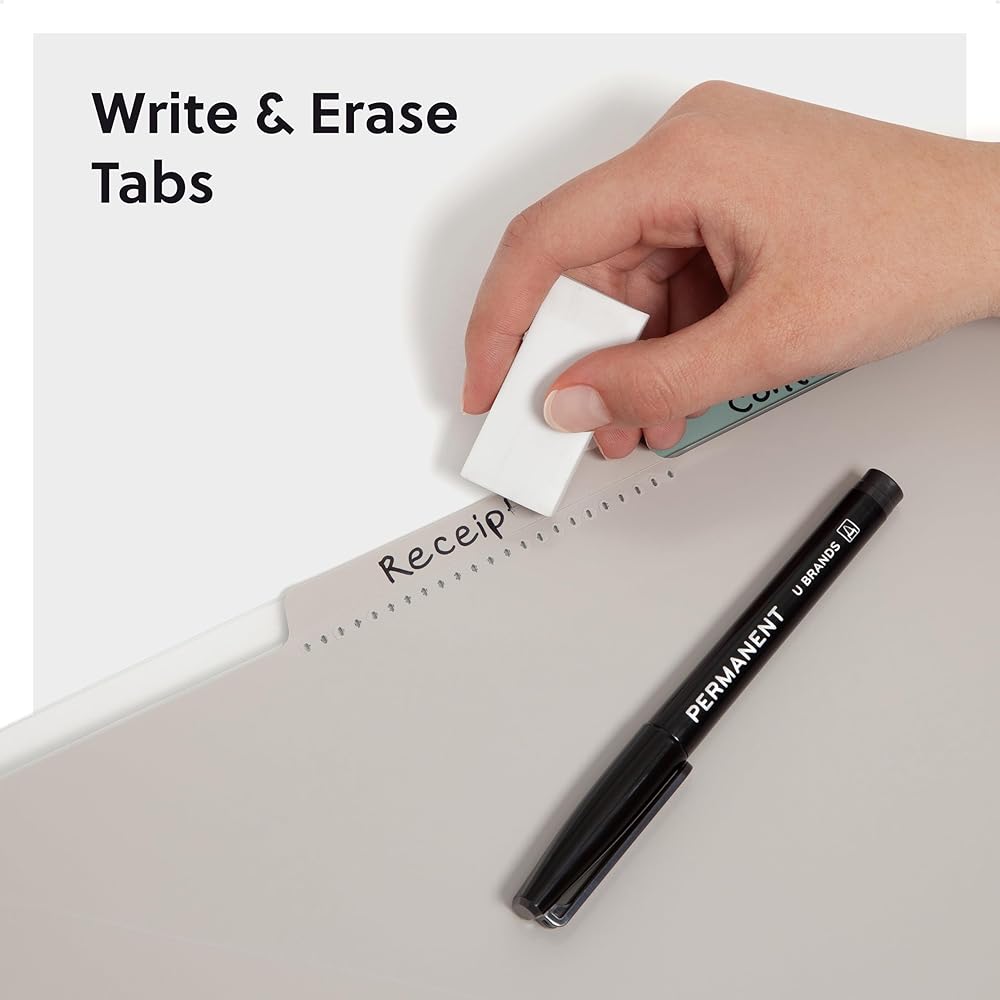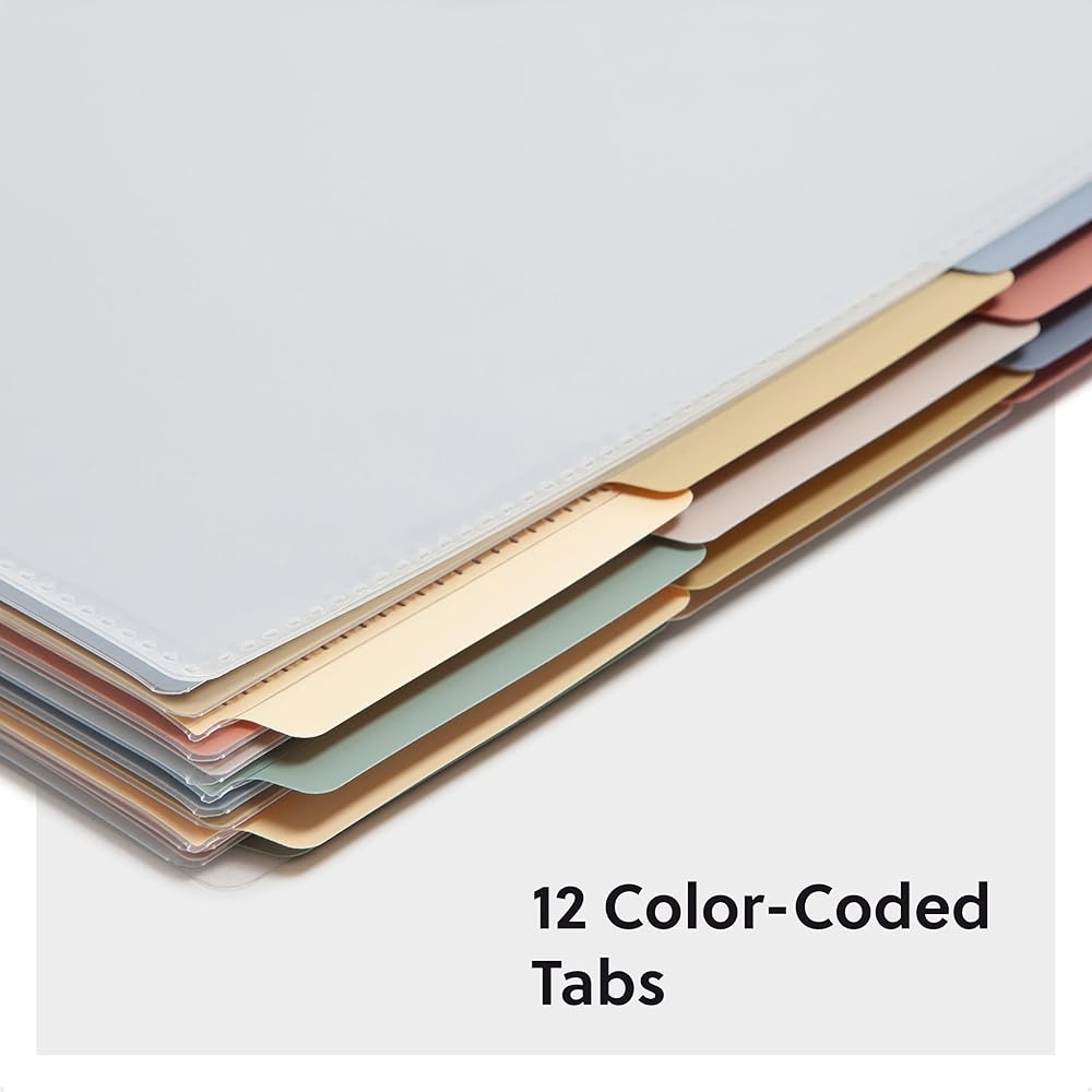 EFFORTLESS SORTING: This plastic folder organizer with 12 pockets provides ample space to sort and categorize your materials, ensuring easy access and efficiency; 1/3-cut reusable write & erase tabs provide three positions for convenient labeling and easy identification