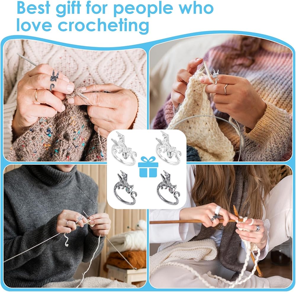 Adjustable Design: Each crochet tension ring for finger is adjustable to fit any finger comfortably, allowing you to crochet easily and comfortably for long periods of time. Whether you have slender fingers or larger hands, these knitting & crochet supplies provide a comfortable and secure fit. Simply adjust these tension rings for crocheting to your preferred size and enjoy a fit that won't slip during use.