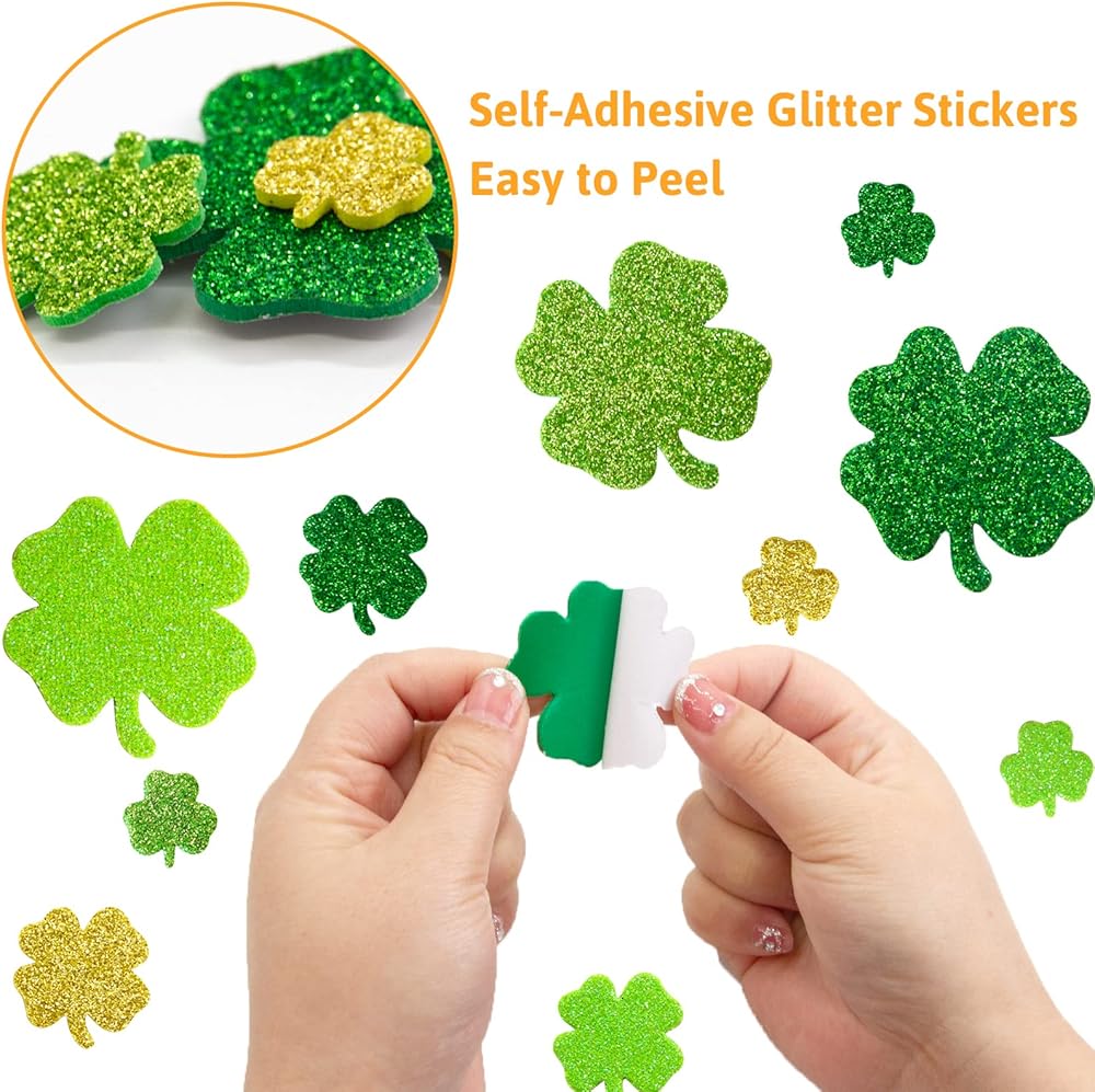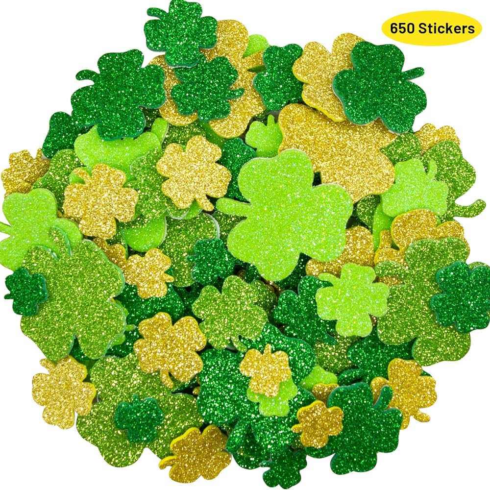 ملصقات Glitter Shamrock للأطفال 650 PCS Foam Shamrock Craft Sticker St Patrick's Day Party Supplies Supplies Supplies