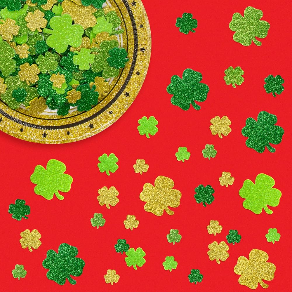 • تشمل الحزمة: 650 PCS Shamrock Foam Plitter. 4 ألوان مختلفة ، بما في ذلك الأخضر الفاتح والذهب والأخضر الداكن والأخضر العشب