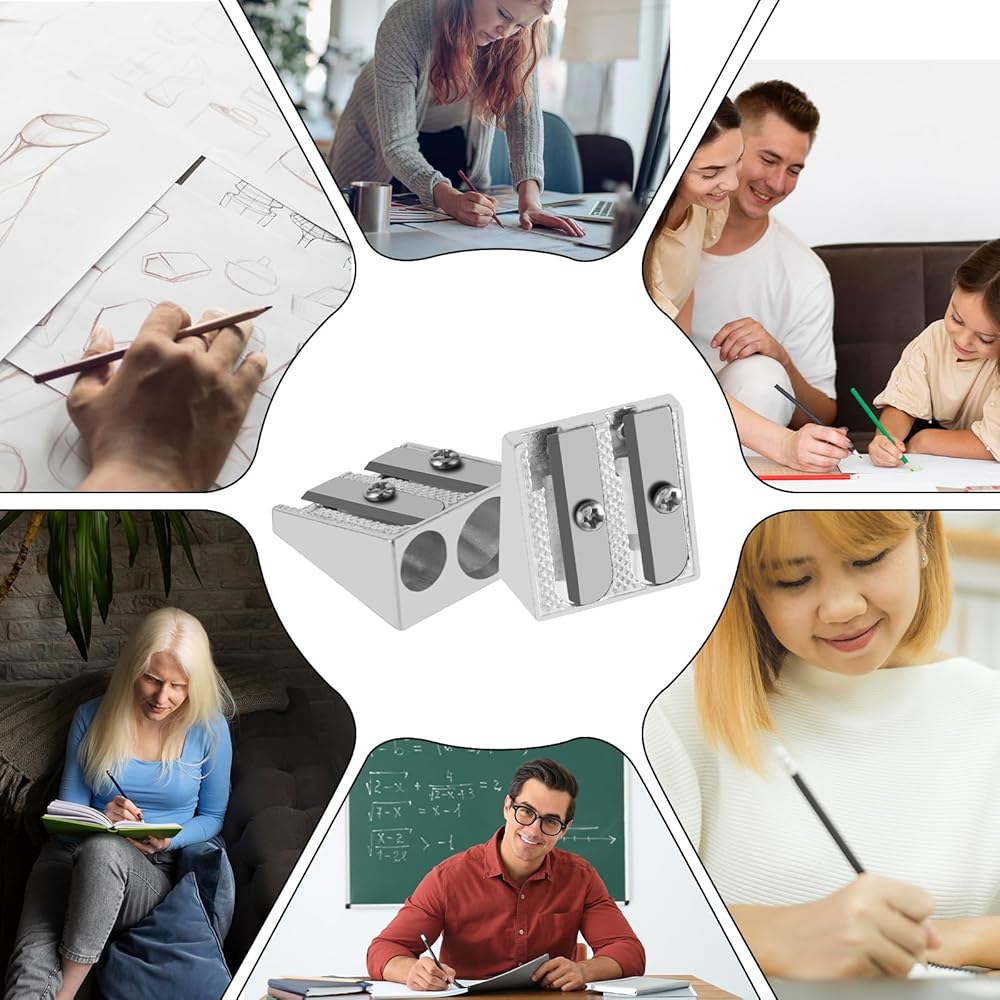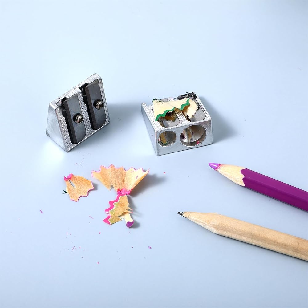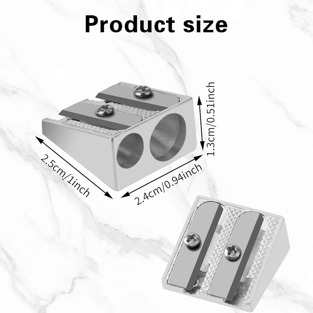 YUXIANLB 12 Pack Metal Pencil Sharpener Handheld 2-Hole Metal Pencil Sharpeners Manual Aluminum Alloy Sharpener, Wedge Profile Pencil Sharpener for Adult Kids School Office (Silver)
