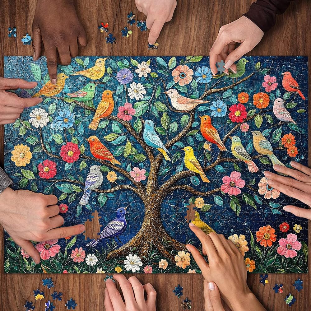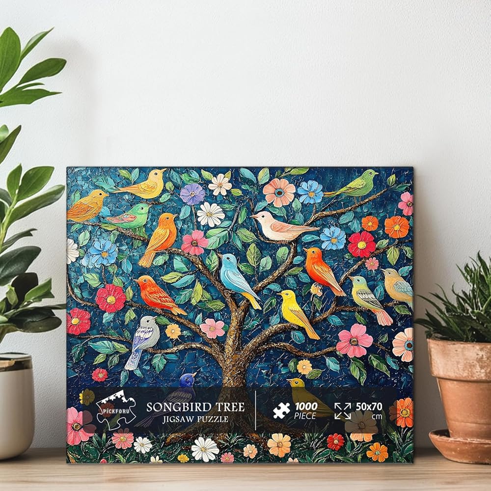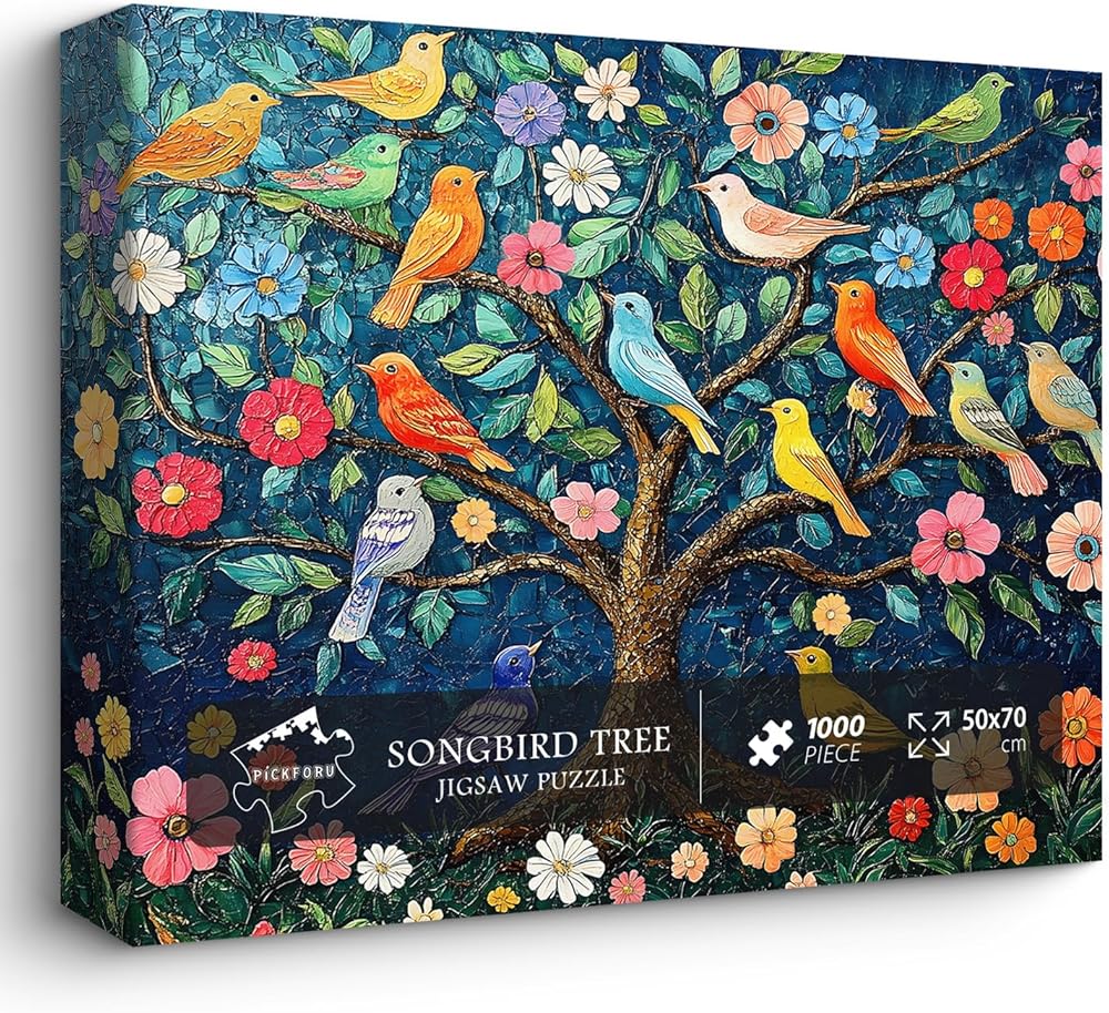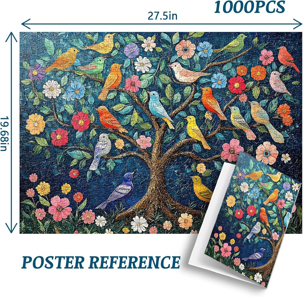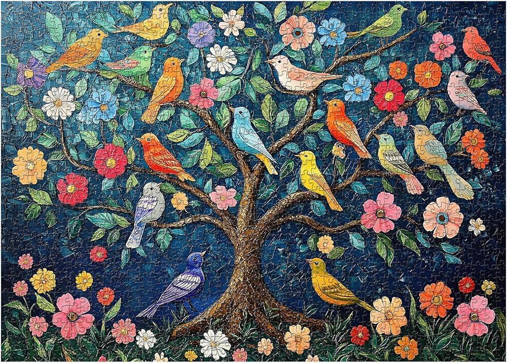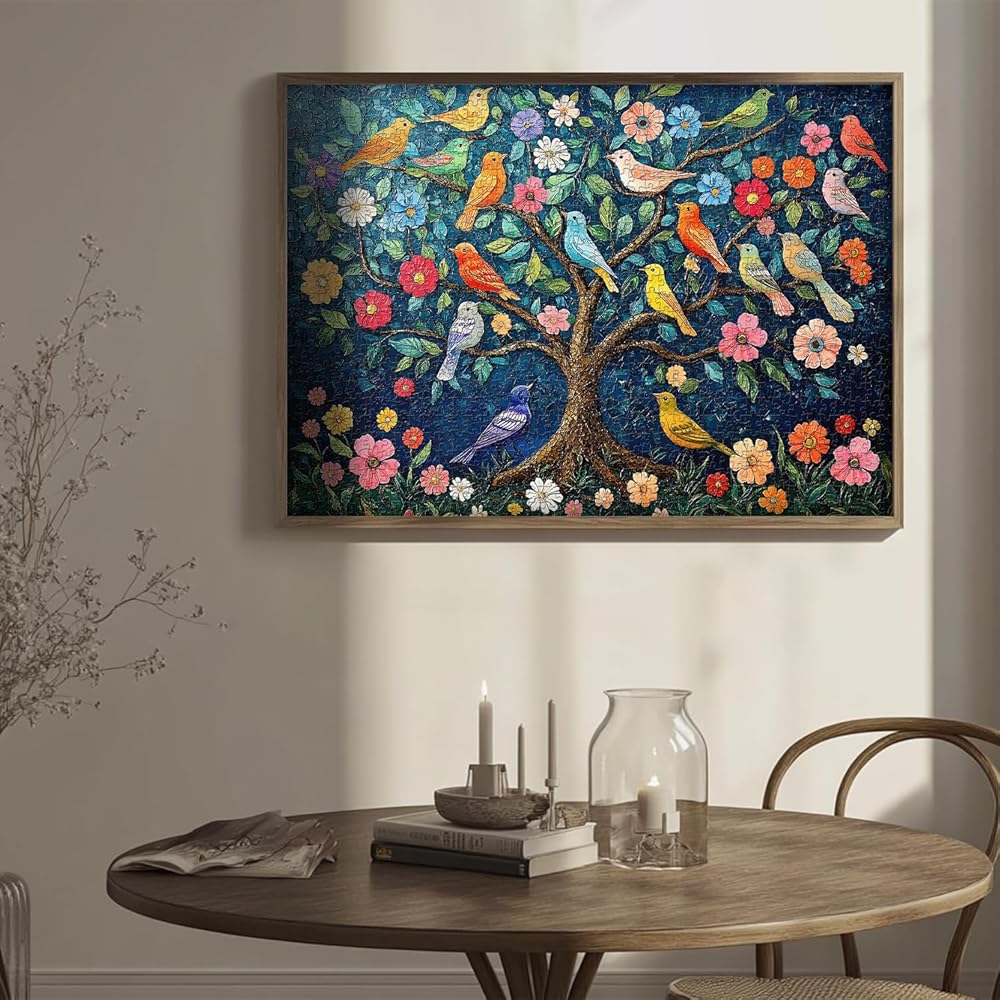 PICKFORU Mosaic Tree of Life Puzzles for Adults 1000 Pieces, Unique Bird Jigsaw Puzzles,Vintage Art Flower 1000 Piece Puzzle
