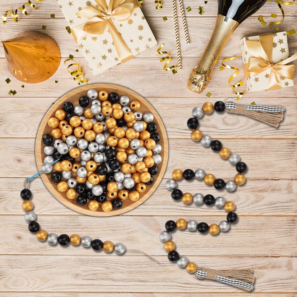 • Wide Applications: These black, gold and silver wooden beads have a wide range of applications, they can be made into wooden bead string, wooden bead garlands, key rings, curtain rings according to their own ideas and creativity, they are ideal decorations for New Year, Christmas, birthday party and graduation.