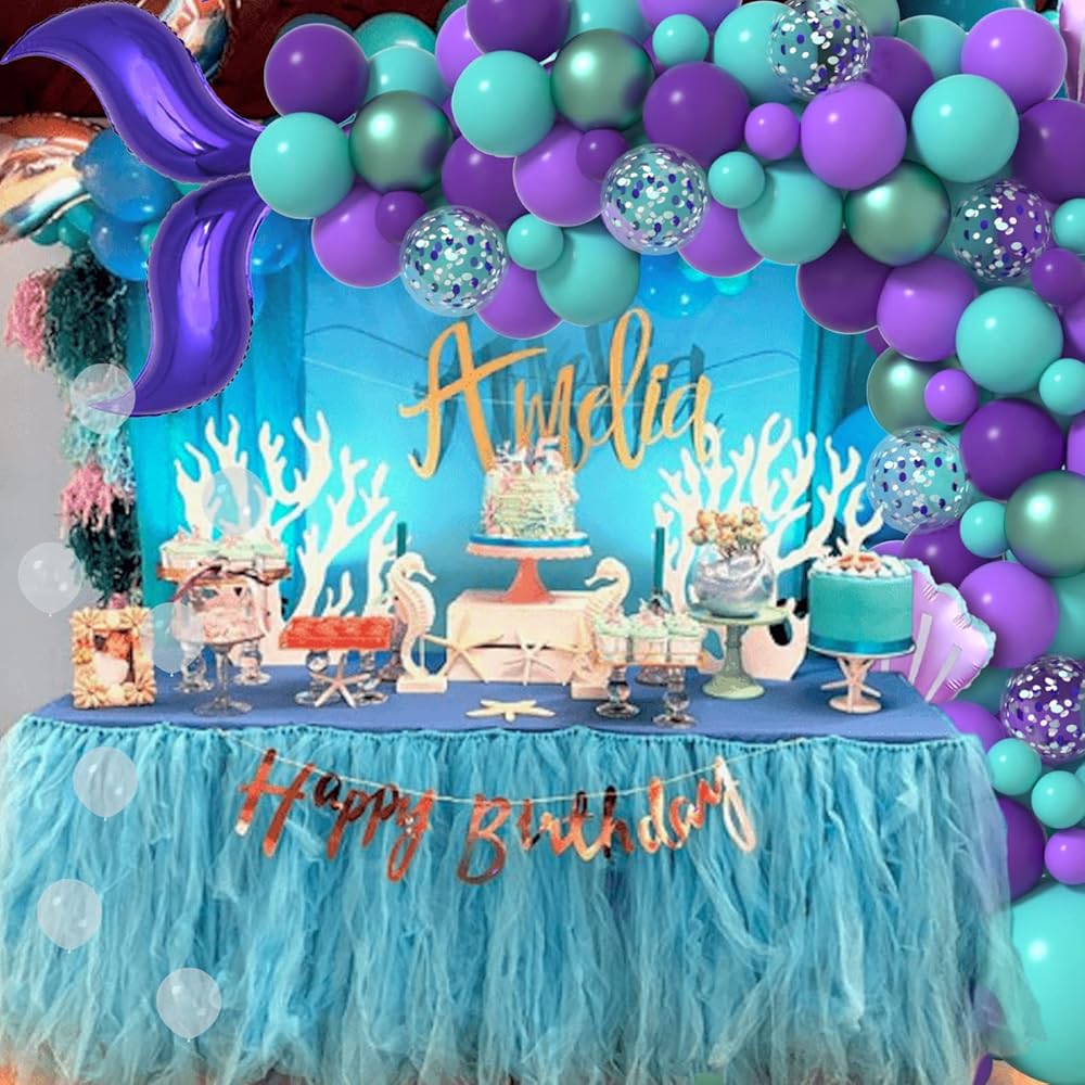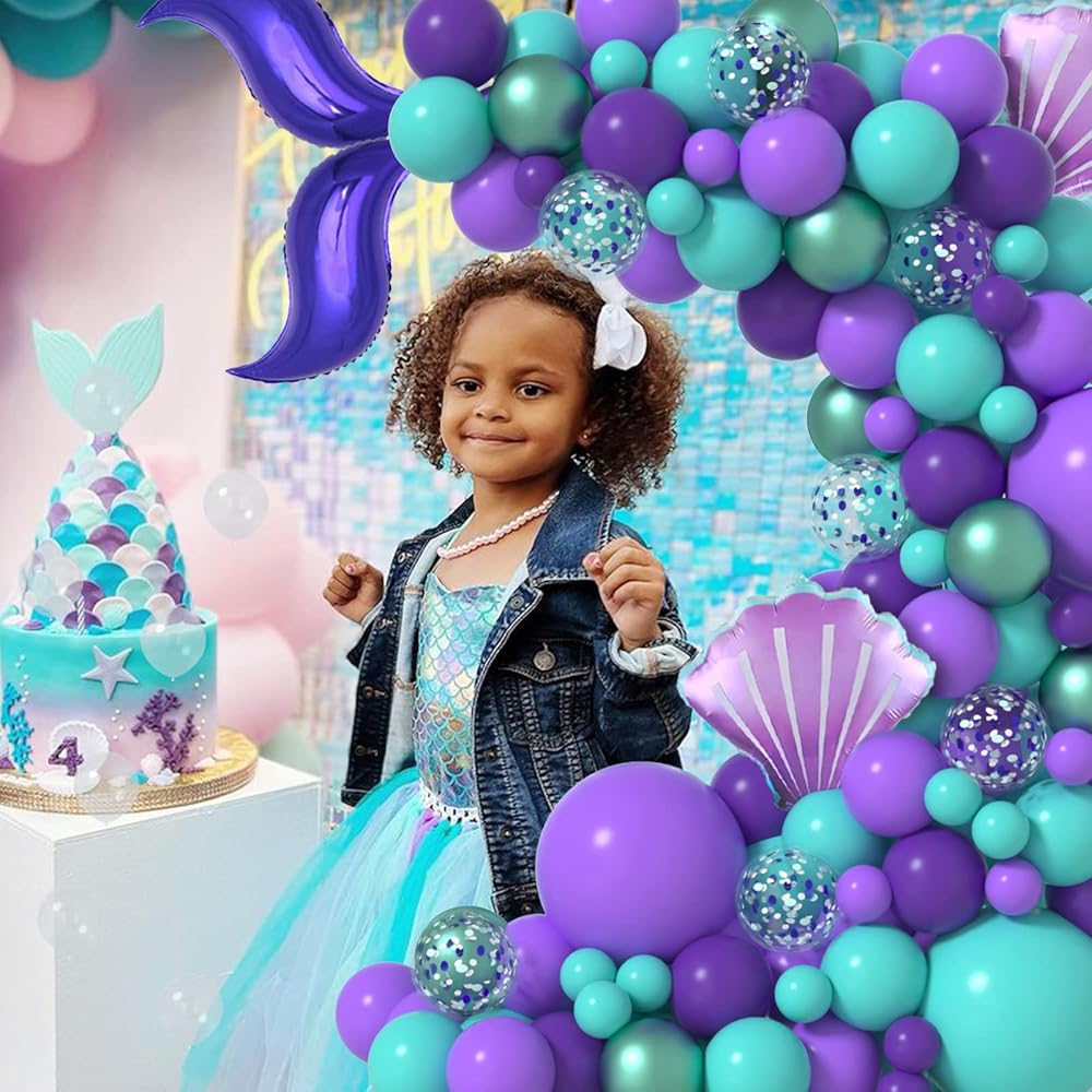 Janinus Mermaid Arch Kit - بالونات Confetti Purple & Teal - بالونات ذيل حورية البحر - تحت البحر - دش الطفل وزينة حفلة عيد ميلاد