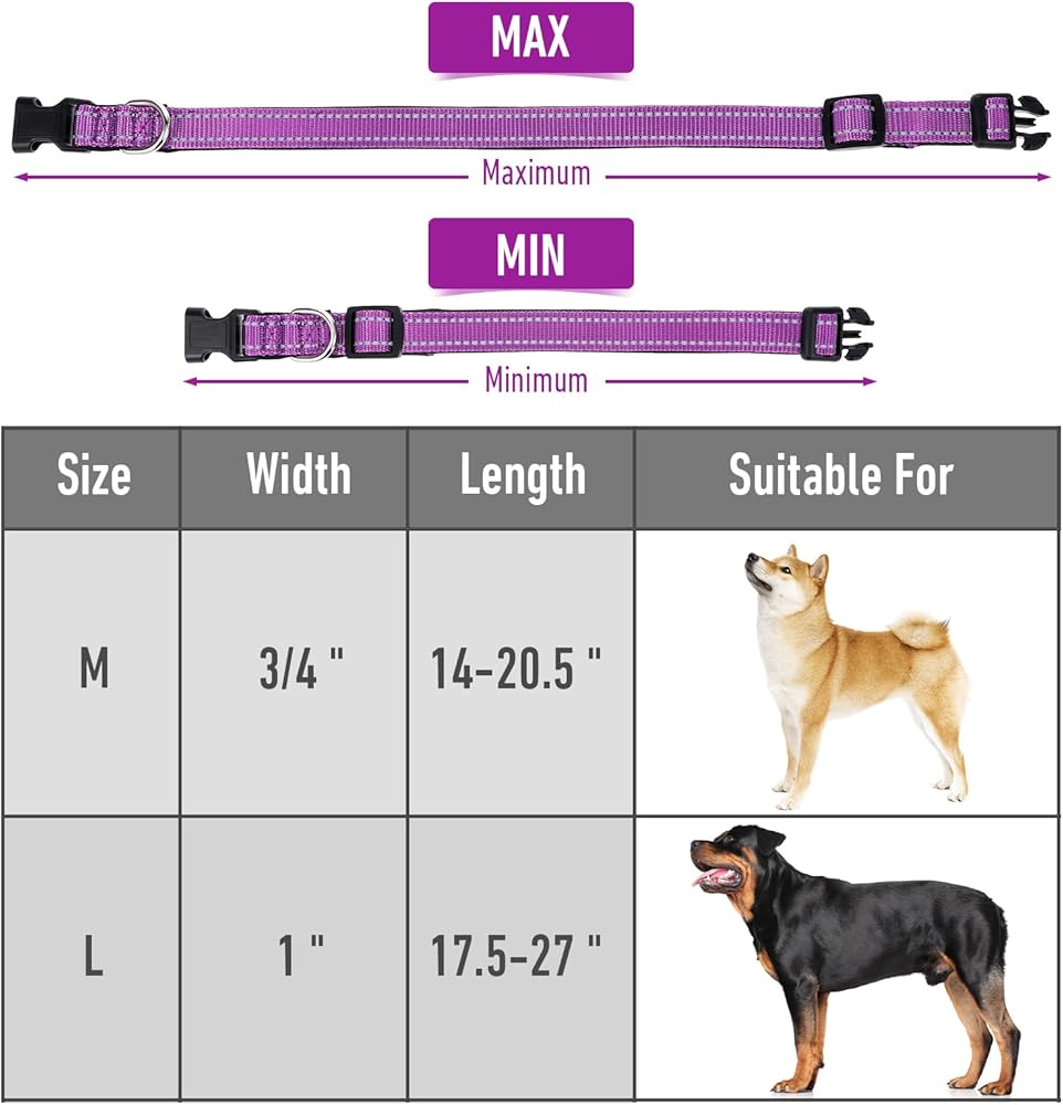 Fashionable and Practical - This purple boy dog collar is both stylish and practical, suitable for both female and male dogs. The reflective dog collars feature adds an extra layer of security during nighttime walks. The adjustable dog reflective collar is adjustable and available in multiple sizes, providing more comfort and support, making the practical dog collar a fashionable accessory for active dogs