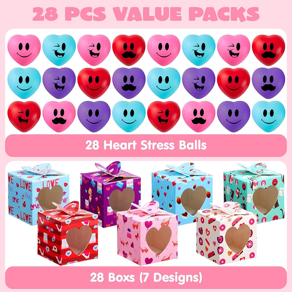 💗Super Pack Pack. تتضمن مجموعة حفلات عيد الحب لدينا 28 جهازًا PCS Valentine 3D Box مع ألعاب اسفنجي على شكل قلب. تحتوي كرات تخفيف الإجهاد هذه على 3 وجوه لطيفة مختلفة. صناديق هدايا عيد الحب الحرف تأتي مع 7 أنماط تحت عنوان عيد الحب.