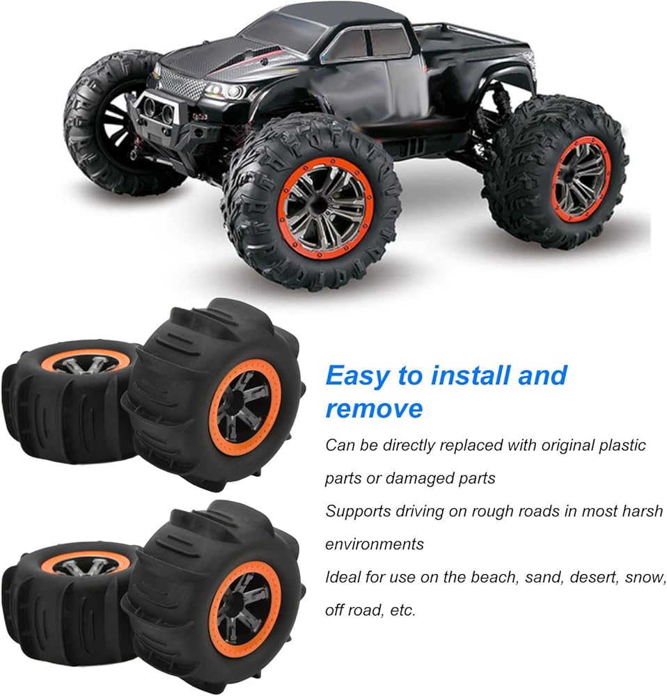 القيادة المستقرة والرشيقة: تجربة تجربة قيادة مستقرة ورشيقة مع إطارات RC Beach الخاصة بنا ، مصممة لمعالجة الطرق الوعرة والبيئات الصعبة بسهولة. تضمن مرونتها التعامل السلس والتحكم المستجيب ، مما يتيح لك التنقل في التضاريس الصعبة بثقة ودقة.