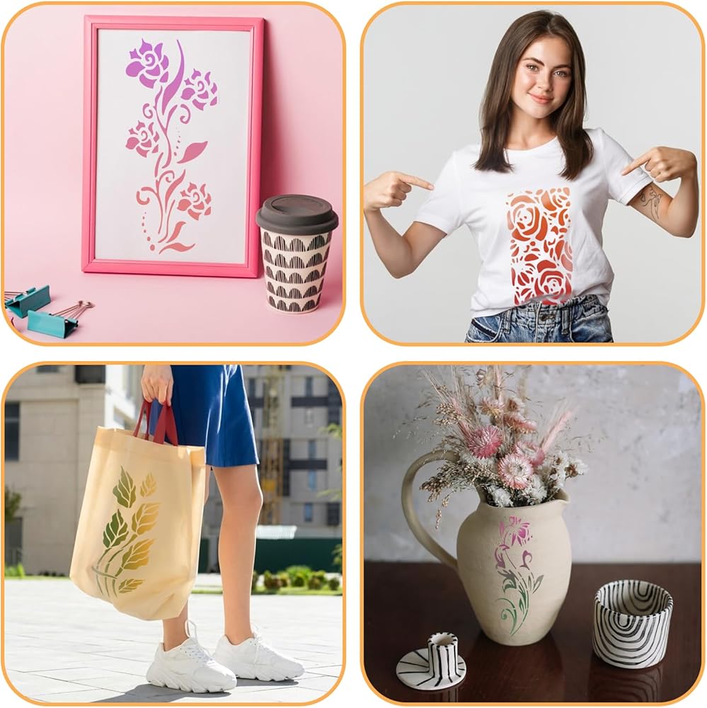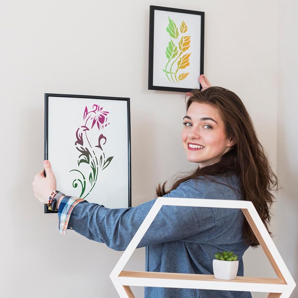 • Various Shapes: This floral stencils for walls set offers a variety of template designs in both large and small sizes. This variety makes it easy to find the ideal size and shape for your specific DIY project