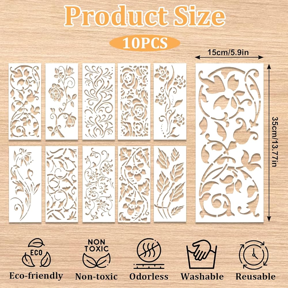 أوراق جدار الاستنسل ، 10 قطع من زهرة الإستنسل القابلة لإعادة الاستخدام لطلاء الأرواح الطلاء الكبرى قوالب الكرمة