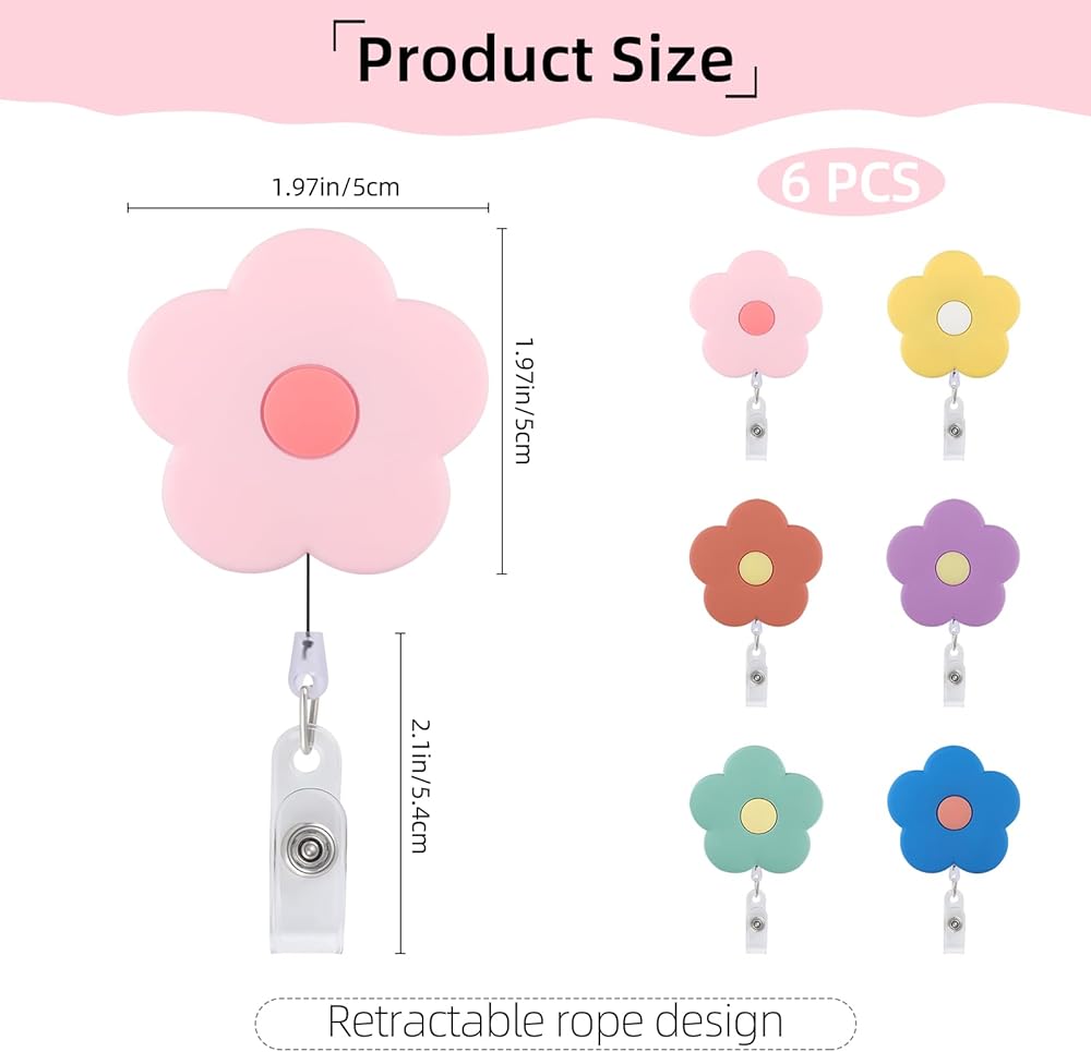 حزمة شاملة: تتضمن كل حزمة 6 بكرات شارة شكل زهرة ، تقدم مجموعة متنوعة من التصميمات اللطيفة مناسبة للاستخدام اليومي. مثالي للمشاركة مع العائلة أو الأصدقاء أو الزملاء ، ضمان أن كل شخص لديه بكرة شارة ساحرة.