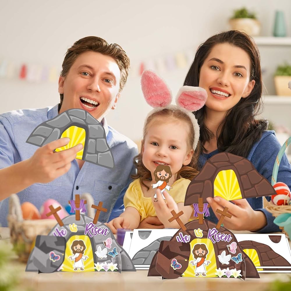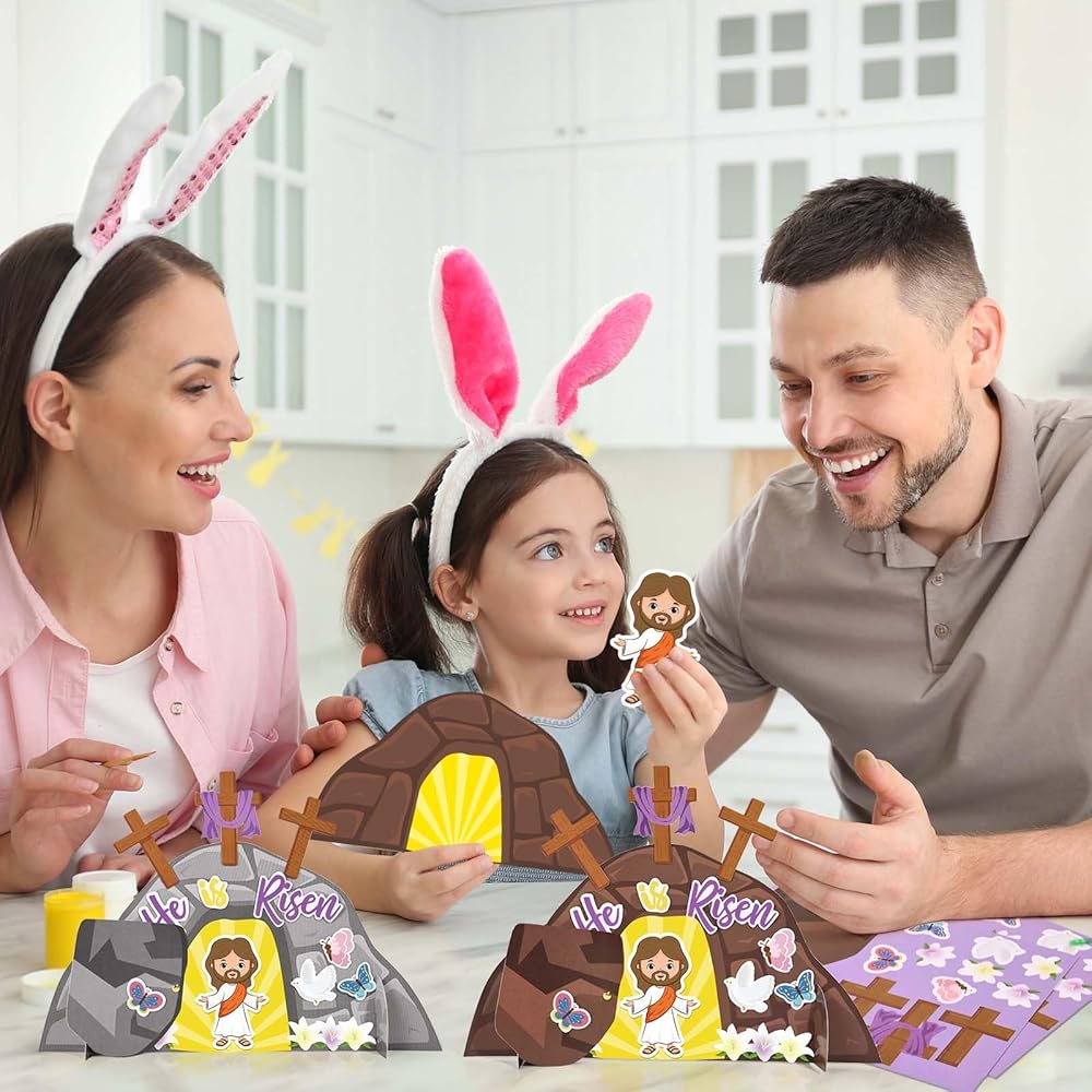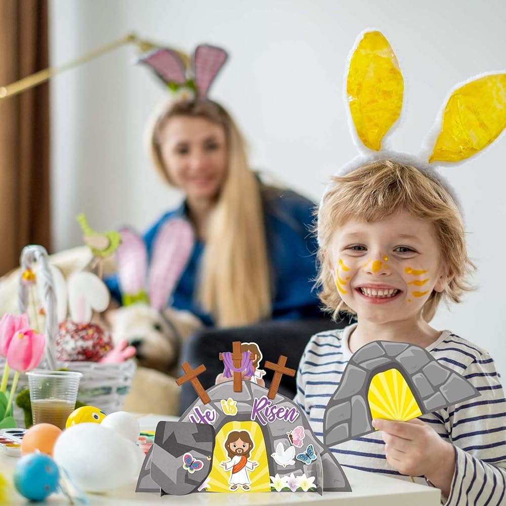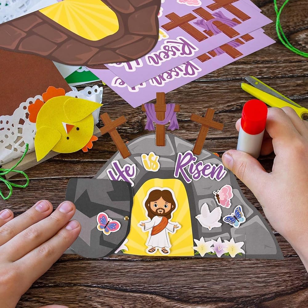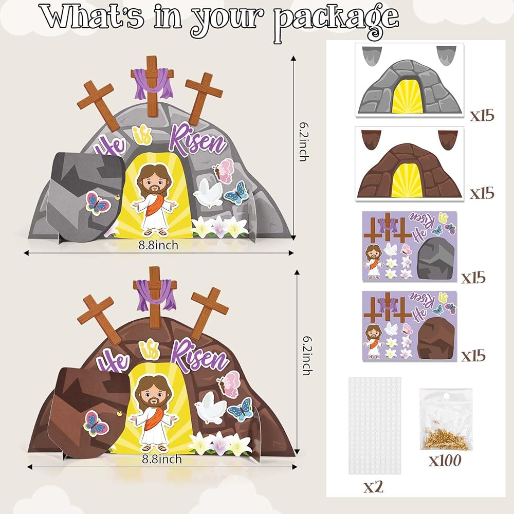 Sanixin 30 PCS Easter يسوع هو مجموعة حرفية صاعدة ، اصنع زخارف زنبقك الدينية الخاصة بك ، و DIY Jesus Craft Kit for Easter Day Party Church Party Party Barty