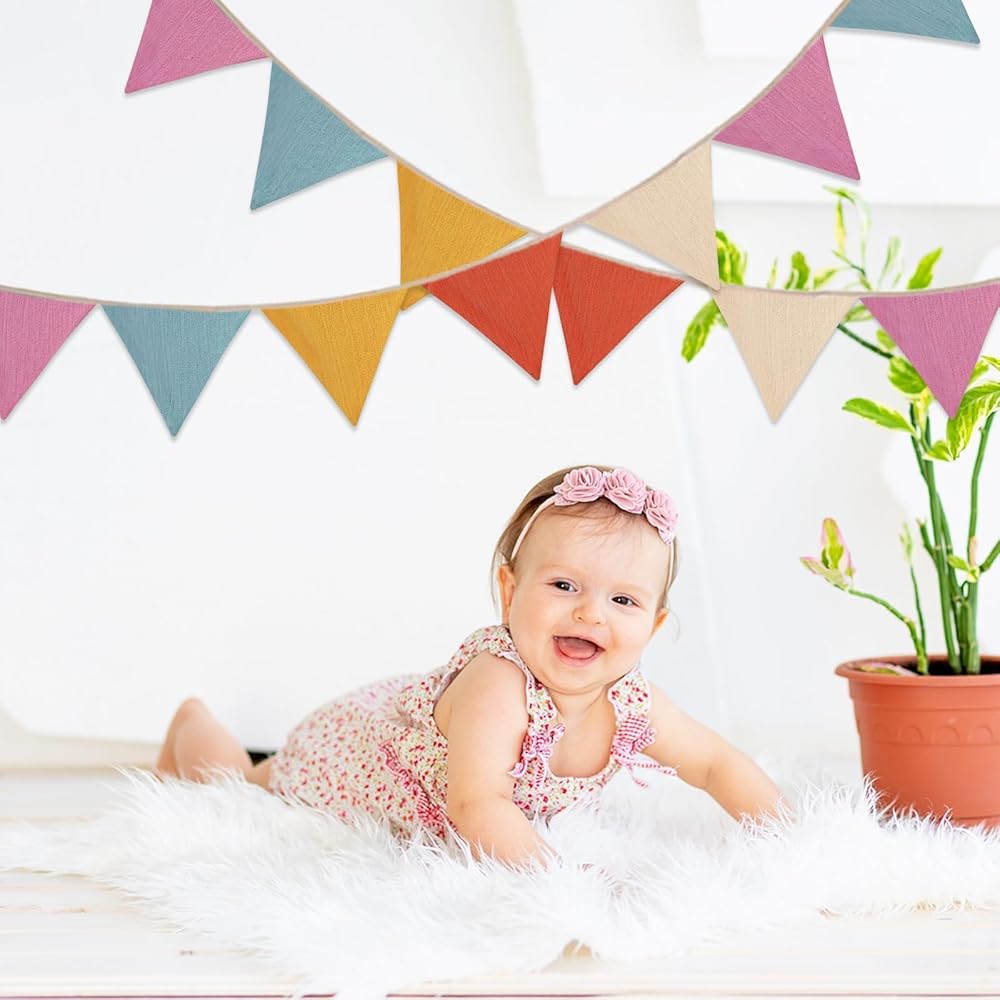 أعلام راية 17 قدمًا ، 2 أجهزة كمبيوتر ملونة ، مثلث إكليل ، مثلث راية بانر باهو قوس قزح طفل صغير ، ديكور غرفة غرفة للاستحمام الطفل ، زواجية حفل زفاف ، كل 8.5 قدم