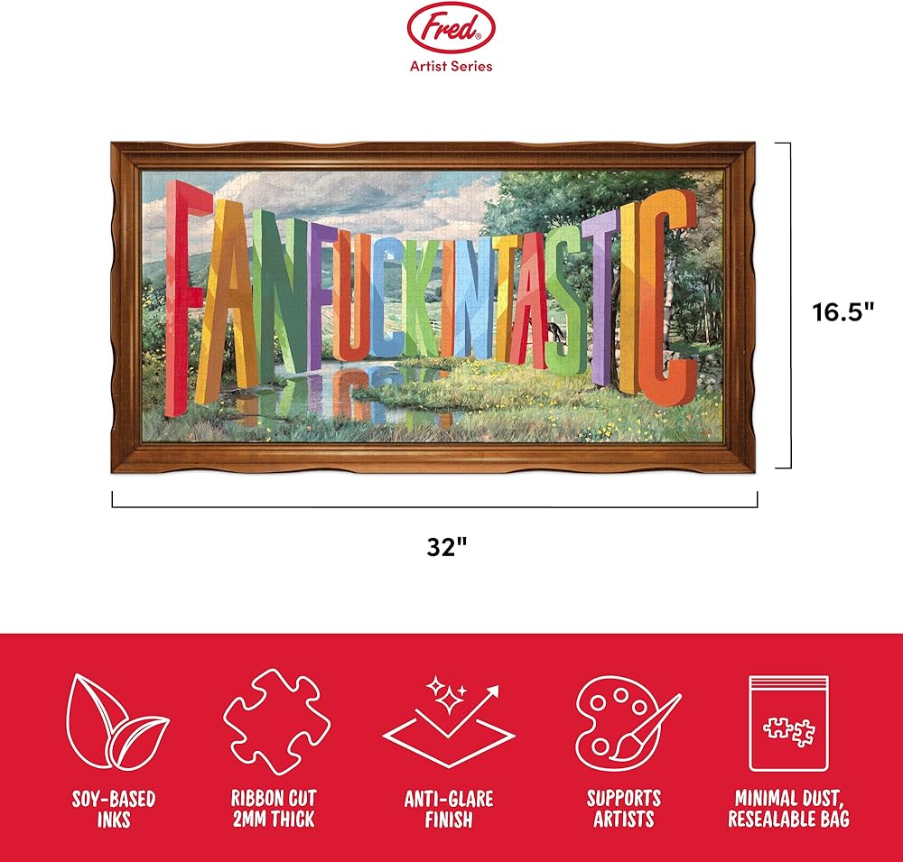 HIGH QUALITY: The Fred Artist Series jigsaw puzzles are all made to the highest quality standards. Each 2mm thick ribbon-cut puzzle is made of 90% recycled material, and printed with soy-based inks with an anti-glare finish.