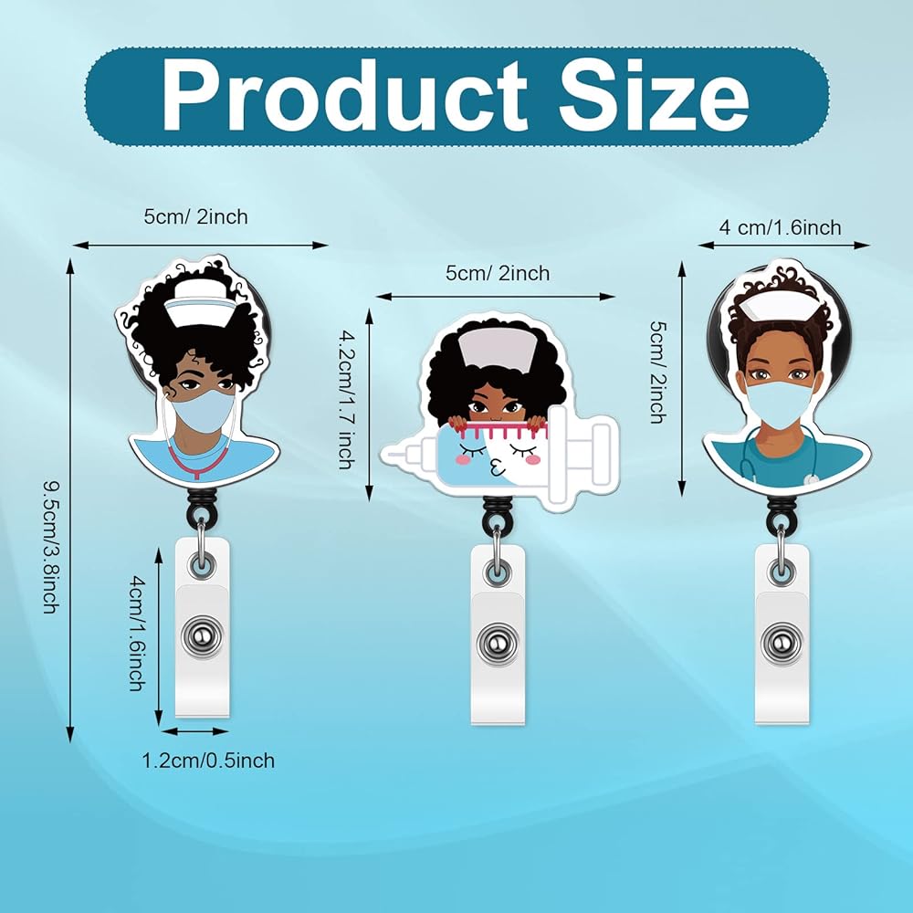 مجموعة شارة التمريض مجموعة: سوف تتلقى 3 حاملي شارة ممرضة الفتاة السوداء في 3 أنماط مختلفة ، كل حجم نمط تقريبا. 1.6 × 2 بوصة ، كمية كافية وأنماط لتلبية متطلبات الاستخدام اليومي والاستبدال