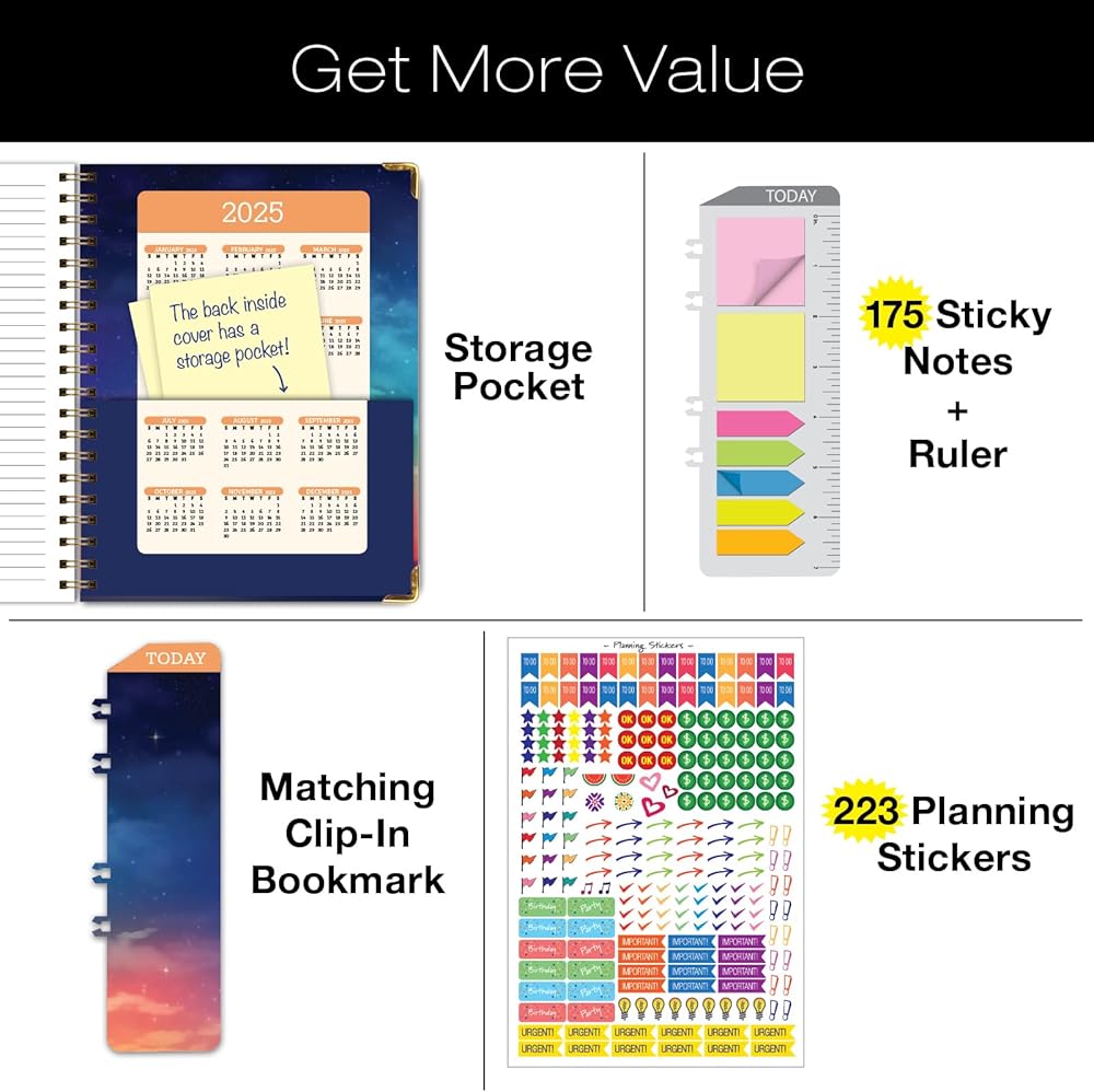 Hardcover Academic Year 2024-2025 Planner: (يونيو 2024 حتى يوليو 2025) 8.5 "X11" Daily Weekly Monthly Planny Agenda. إشارة مرجعية ، مجلد جيب ومجموعة الملاحظات اللزجة (الهروب الهادئ)