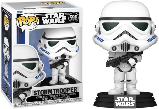 From Star Wars, New Classics - Stormtrooper, as a stylized POP vinyl from Funko! Figure stands 3 3/4 inches & comes in a window display box. Collect the entire line of Mandalorian Funko Pop! Vinyl's: Mandalorian, The Child, Grogu, Beskar Armor Mando, Kuiil, IG-11, Cara Dune, Greef Karga, Q9-Zero, Heavy Infantry Mandalorian, Dark Trooper, Incinerator Stormtrooper, Offworld Jawa, Rogue One Scarif Shoretrooper & Imperial Death Trooper. Collect the entire line of Clone Wars Funko Pop! Vinyl's: Anakin Skywalker, Ahsoka Tano, Obi-Wan Kenobi, Captain Rex, Clone Trooper, Bo Katan, Bad Batch Hunter, Crosshair, Tech, Echo, Wrecker, Gar Saxon, Cad Bane, Asajj Ventress, General Grievous & Darth Maul. Star Wars Rebels Funko Pop! Vinyl's: Ezra, Kanan, Sabine, Hera, Zeb, Chopper, Ahsoka, Grand Admiral Thrawn, Fifth Brother, Seventh Sister, The Inquisitor, Jedi Fallen Order Cal Kestis, BD-1 & Second Sister! Collect the entire line of Star Wars Funko Pop! Vinyl's: Darth Vader, Darth Maul, Stormtrooper, Boba Fett, Han Solo, Luke Skywalker, Princess Leia, Chewbacca, C-3PO, R2-D2, Jabba the Hutt, Wicket, Lando, Bossk, Emperor Palpatine, Gamorrean Guard, Greedo & Tusken Raider! Star Wars: The Force Awakens, The Last Jedi & The Rise of Skywalker Funko Pop! Vinyl's: BB-8, Porg, Finn, Rey, Kylo Ren, Praetorian Guard, General Hux, Poe Dameron, Captain Phasma, First Order Stormtrooper, Maz Kanata, Dark Rey, Sith Trooper, Knights of Ren, D-0, Ben Solo, Supreme Leader Kylo Ren & Red Eye C-3PO. (Each Sold Separately) Includes a Pop box protector fit for any collectors investment.