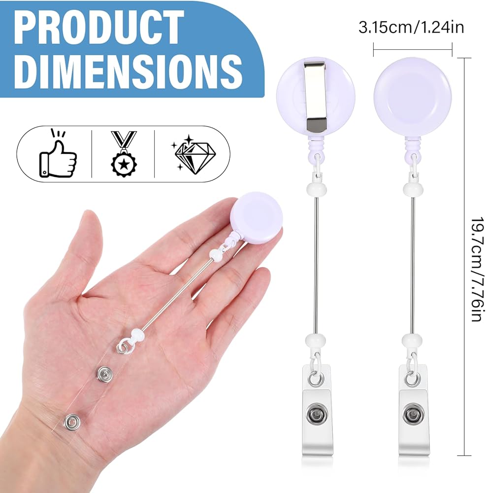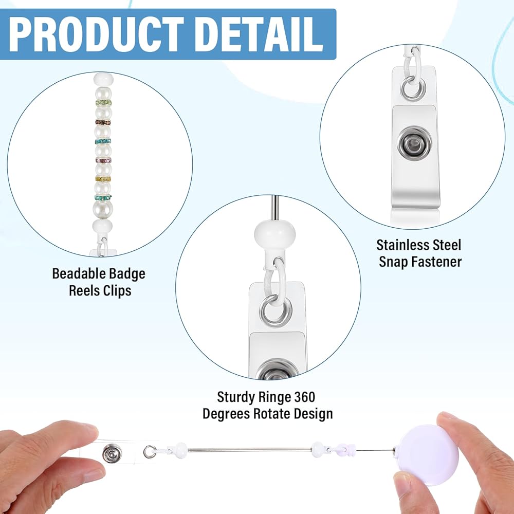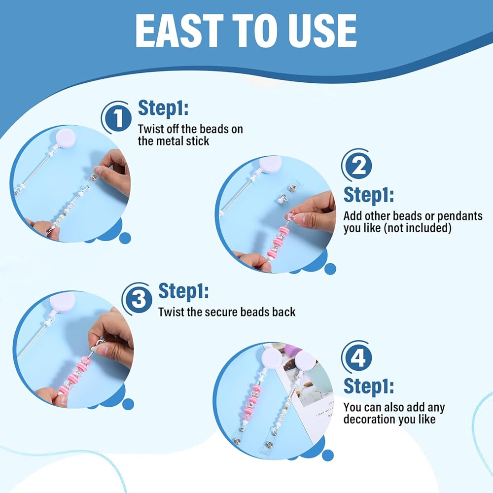 Convenient to Use: You just twist off the white beads on the metal rod, add other beads or pendants you like (beads in the picture are not included in the package), and then twist the fixed white beads back. Simple structure and practicality make them easy to assemble, the retractable reel allows you to easily access your ID badge or key without taking it out of your clothes or bag