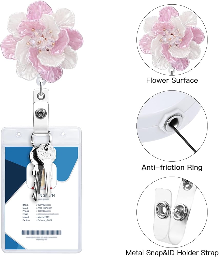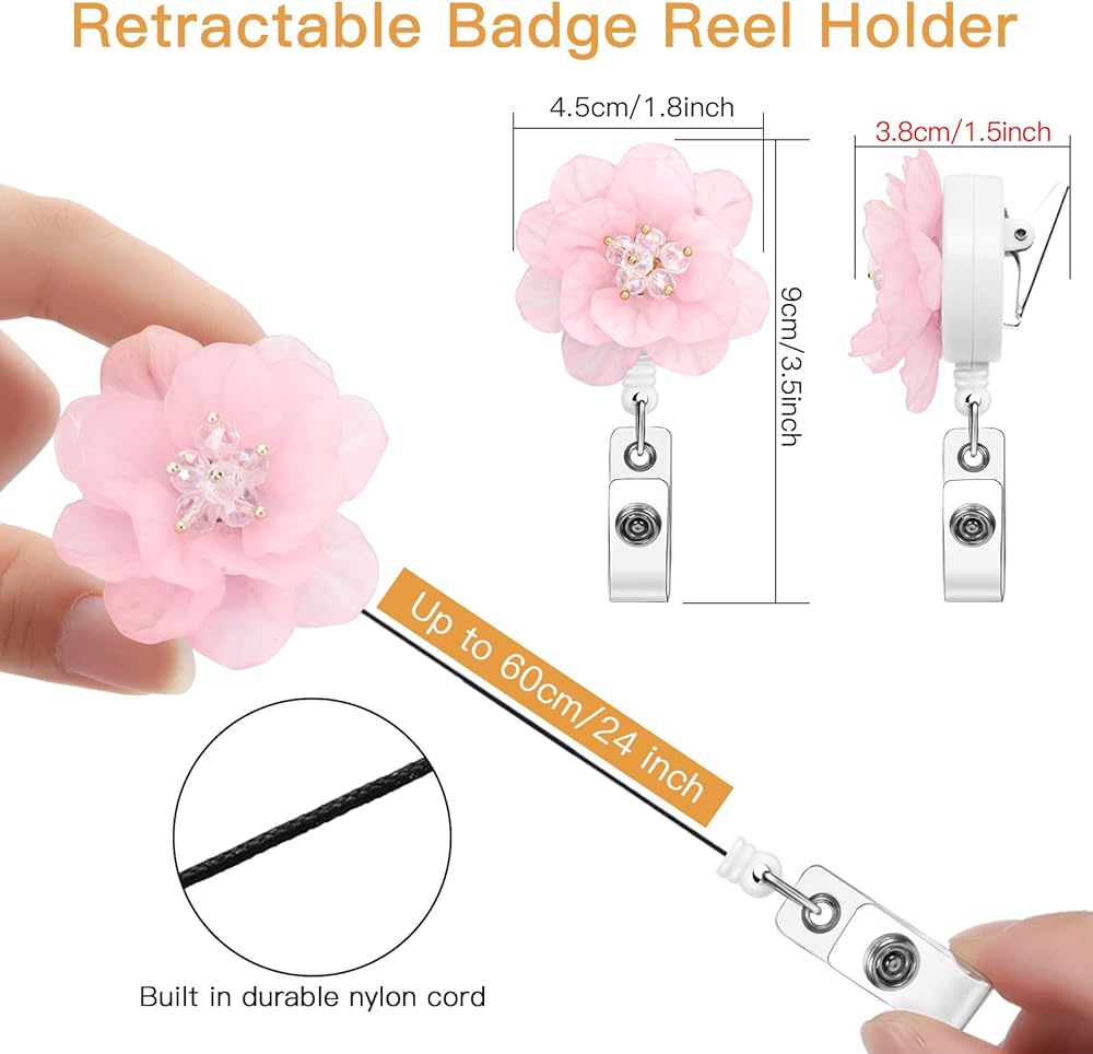 تصميم مظهر رائع للزهور ، يجعلك أكثر إبهارًا. مقطع بكرة الشارة القابلة للسحب مناسبة للمعلم والطالب والممرضة والمتطوع والموظفين وما إلى ذلك ، زخرفة مثالية لشارات الهوية.
