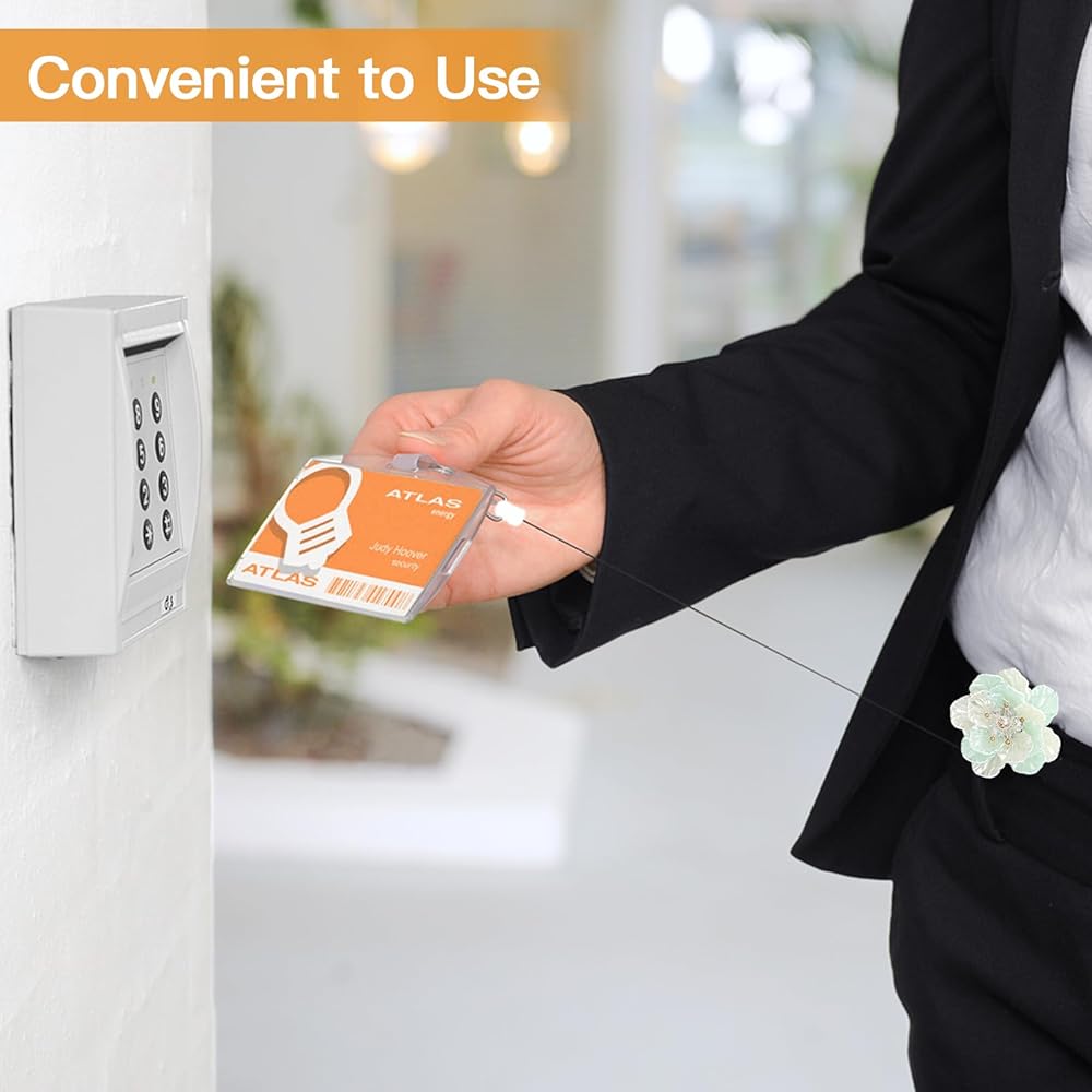 بكرات شارة قابلة للسحب تخزين وتقديم بطاقات العمل بطريقة آمنة ، إنه حل مناسب للمسح في المكتب.