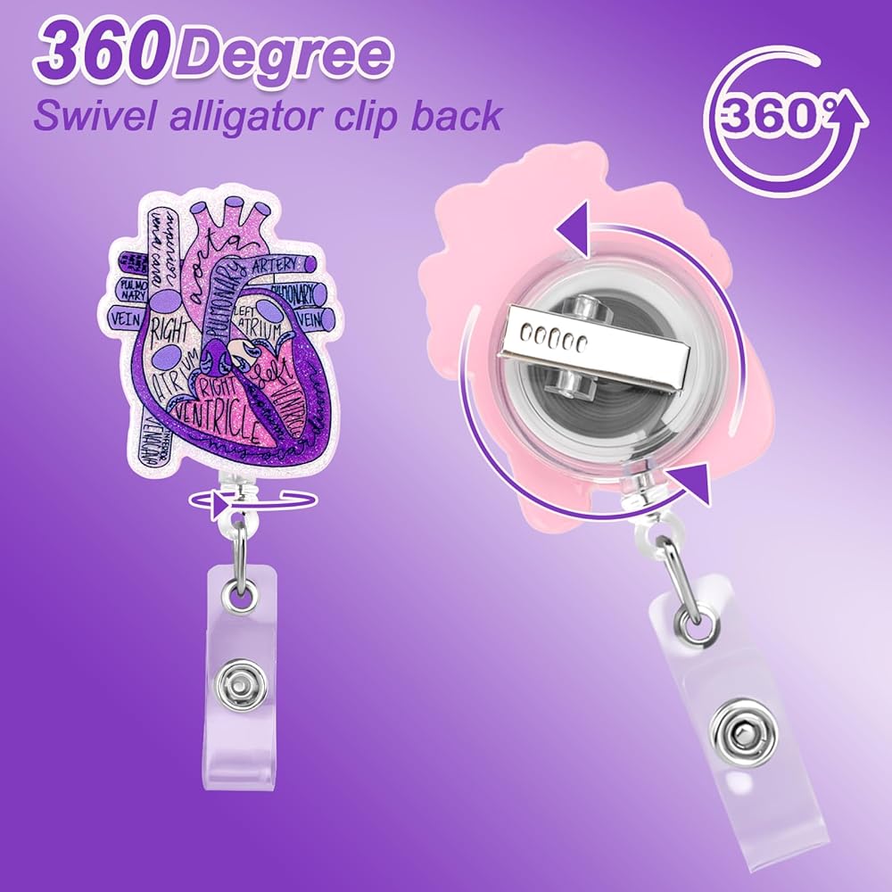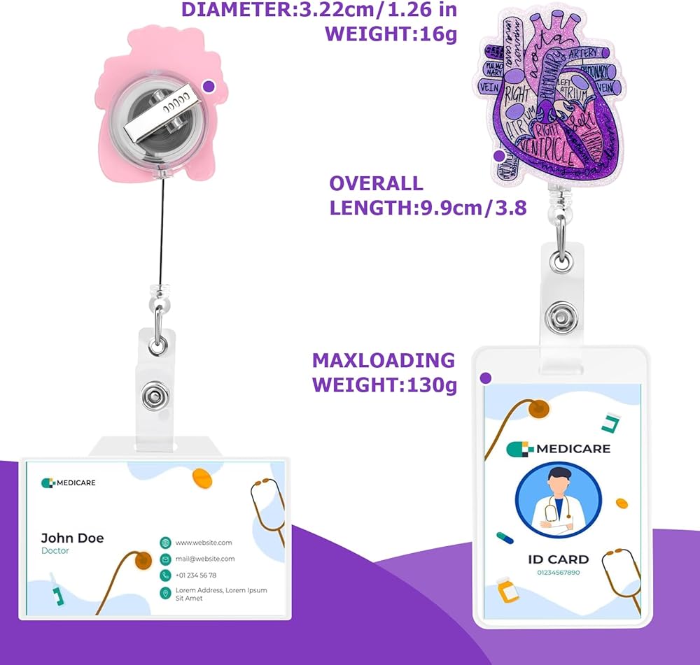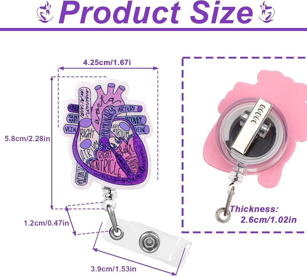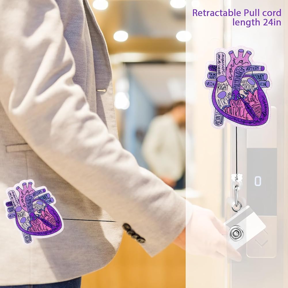 【Charming Design】This funny heart phlebotomy badge reel has a charming heart anatomy pattern, nurse badge reel adds interest and personality to your work clothes.This retractable id badge holders are good for medical personnel and medical assistant accessories are both cute and unique.