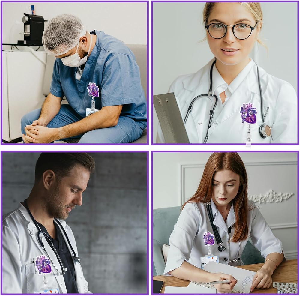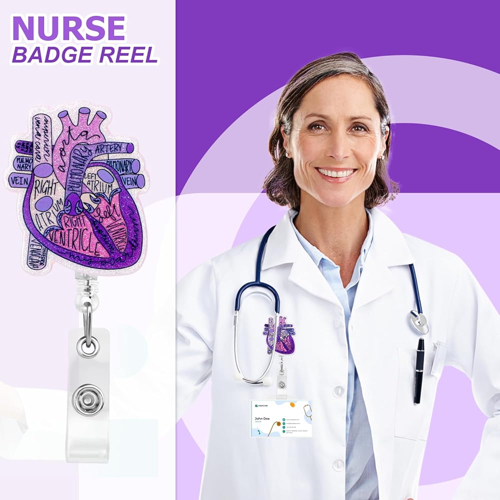 حامل شارة القلب بكرة شارة قابلة للسحب مع مقطع معرف تشريح مضحك اسم العلامة حامل القلب شارة التمريض مقاطع التمساح للطبيب الطالب الطبيعي موظفي العامل الطبي (الأرجواني)