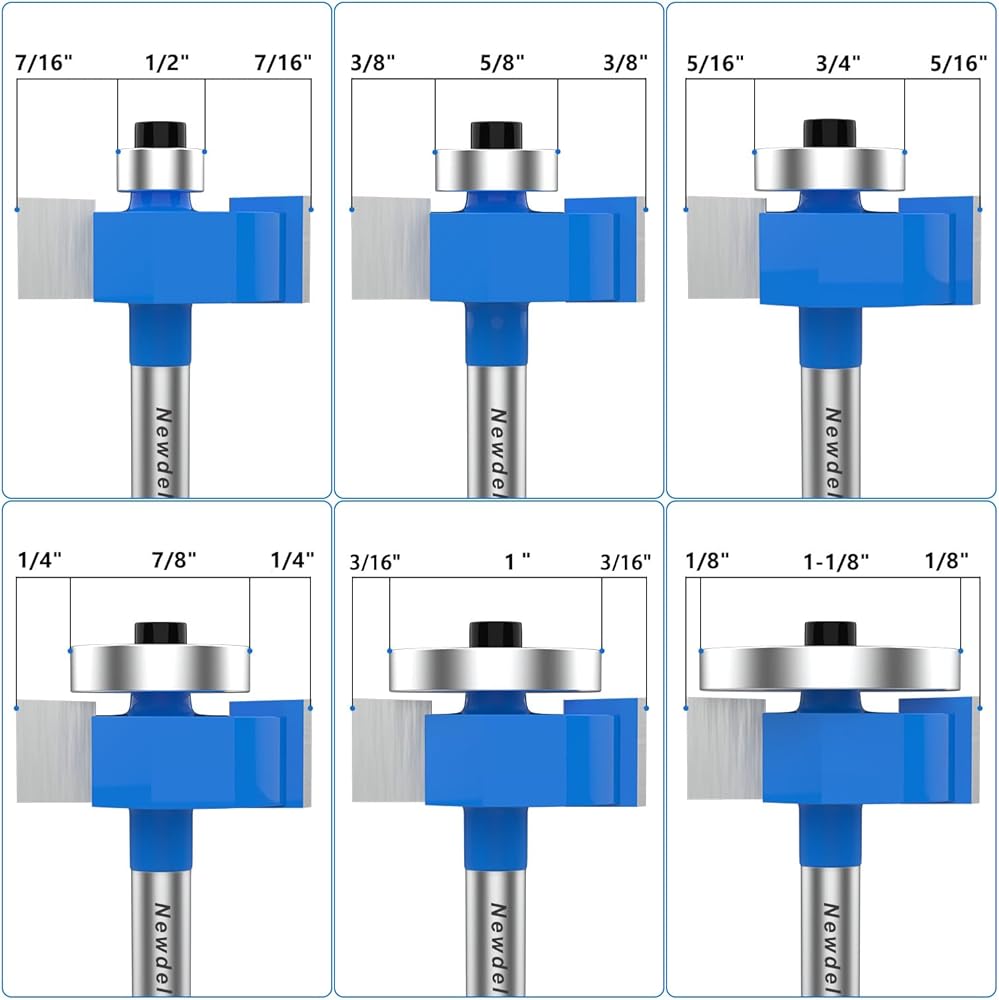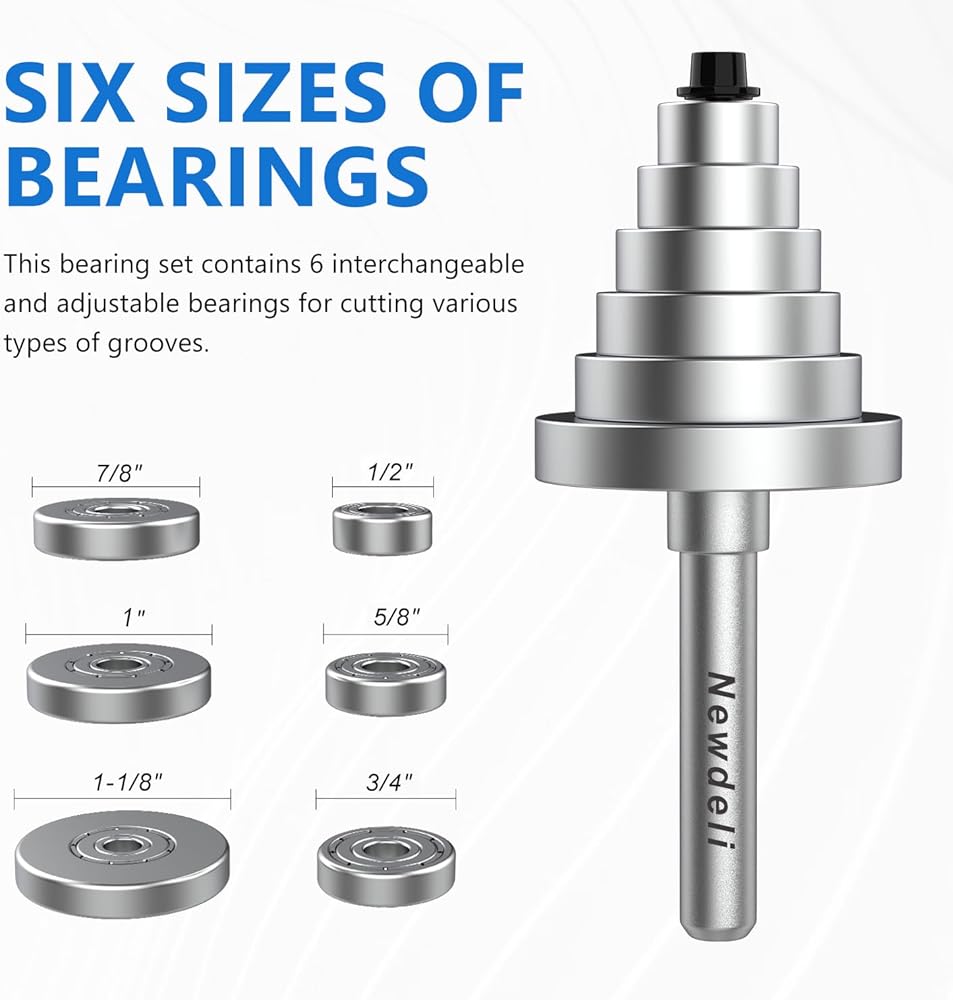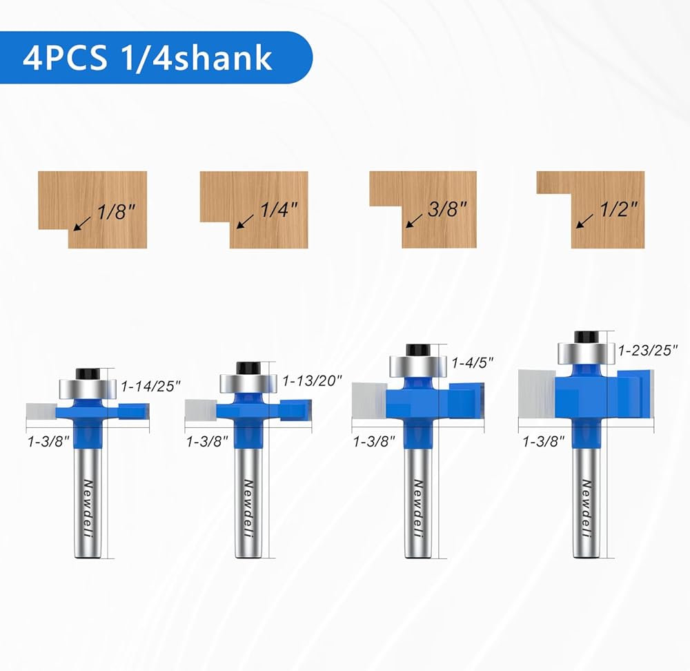 【مجموعة بتات Rabbet】 Newdeli 4pcs Rabbet Router بتات 1/4 "Shank. 4 ارتفاع قطع مختلف: 1/8" ، 1/4 "، 3/8" ، 1/2 "، مع 6 محمل قابلة للتبديل يستخدم لقطع الأعمدة المختلفة 1/2" ، 5/8 "، 3/4" ، 7/8 "، 1" ، 1-1/8 ".