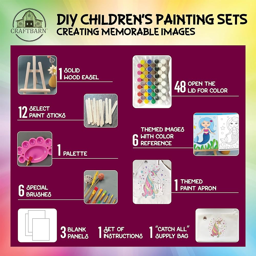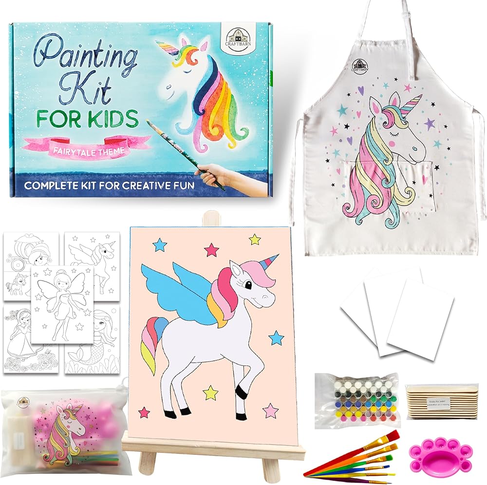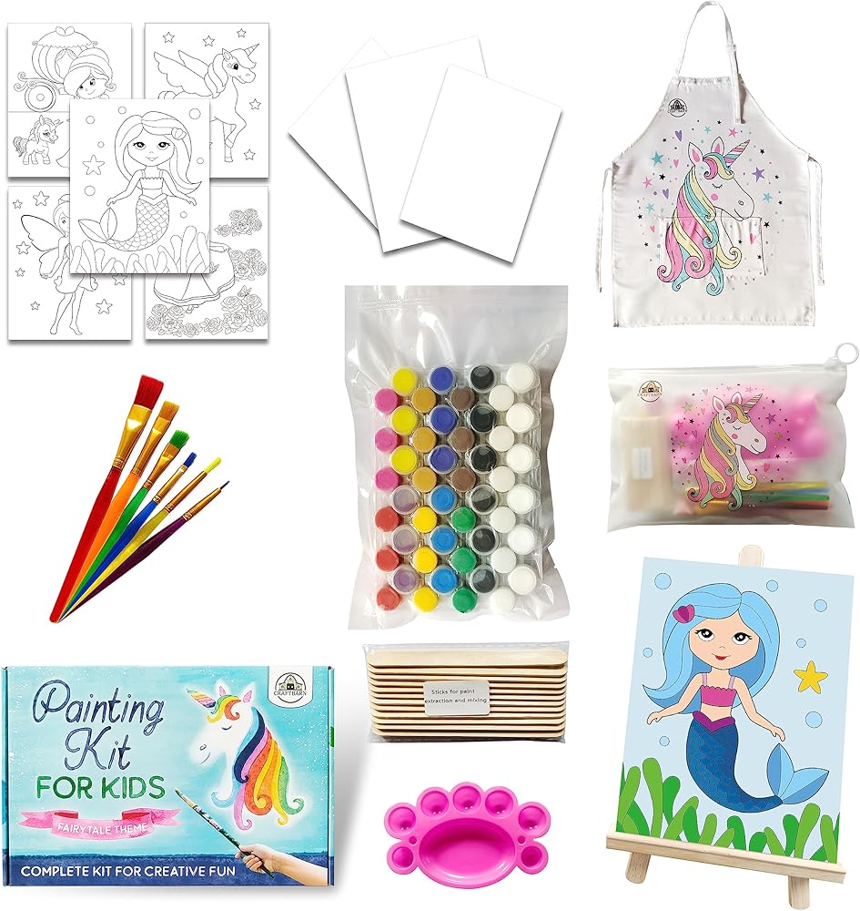 مجموعات طلاء كرافتبارن للأطفال من سن 4 إلى 8 سنوات - 79 قطعة من الحرف اليدوية ذات الطابع الخيالي للأطفال من سن 4 إلى 8 سنوات، مجموعة طلاء للأطفال غير سامة مع ساحة قماش، مجموعات حرفية مثالية للأطفال، طلاء للأطفال مع مجموعات المياه