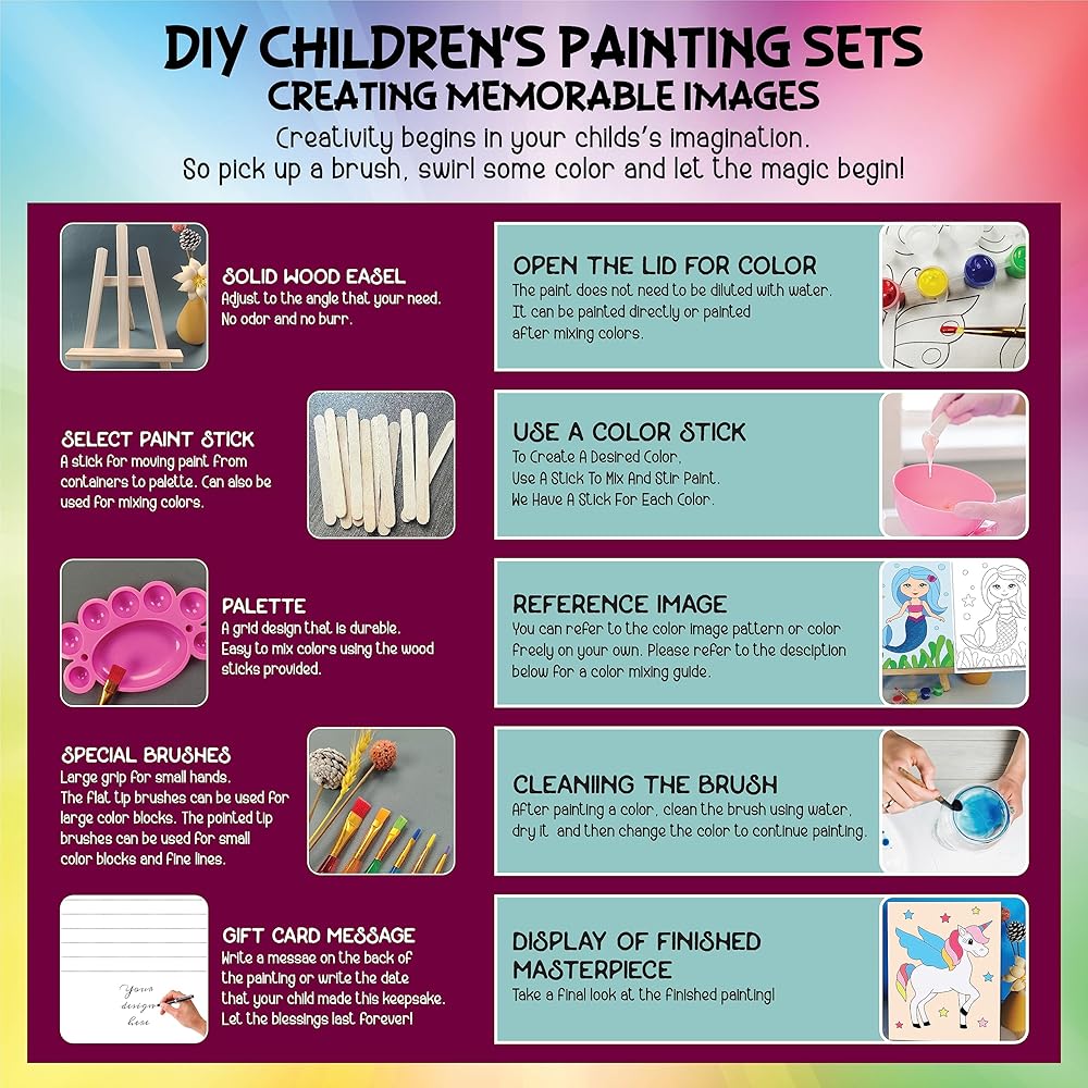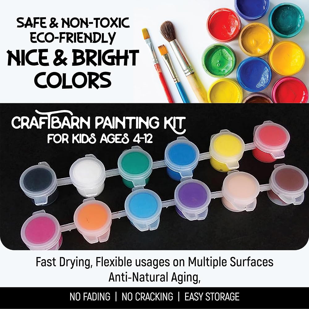 • تساعد الأطفال على الإبداع وطرق جديدة لاستكشاف الأفكار: مجموعة الطلاء الأكريليك الأكثر شمولاً للأطفال المتوفرة، تتضمن مريلة ذات طابع خاص، وطلاء، وفرش وأكثر من ذلك بكثير!