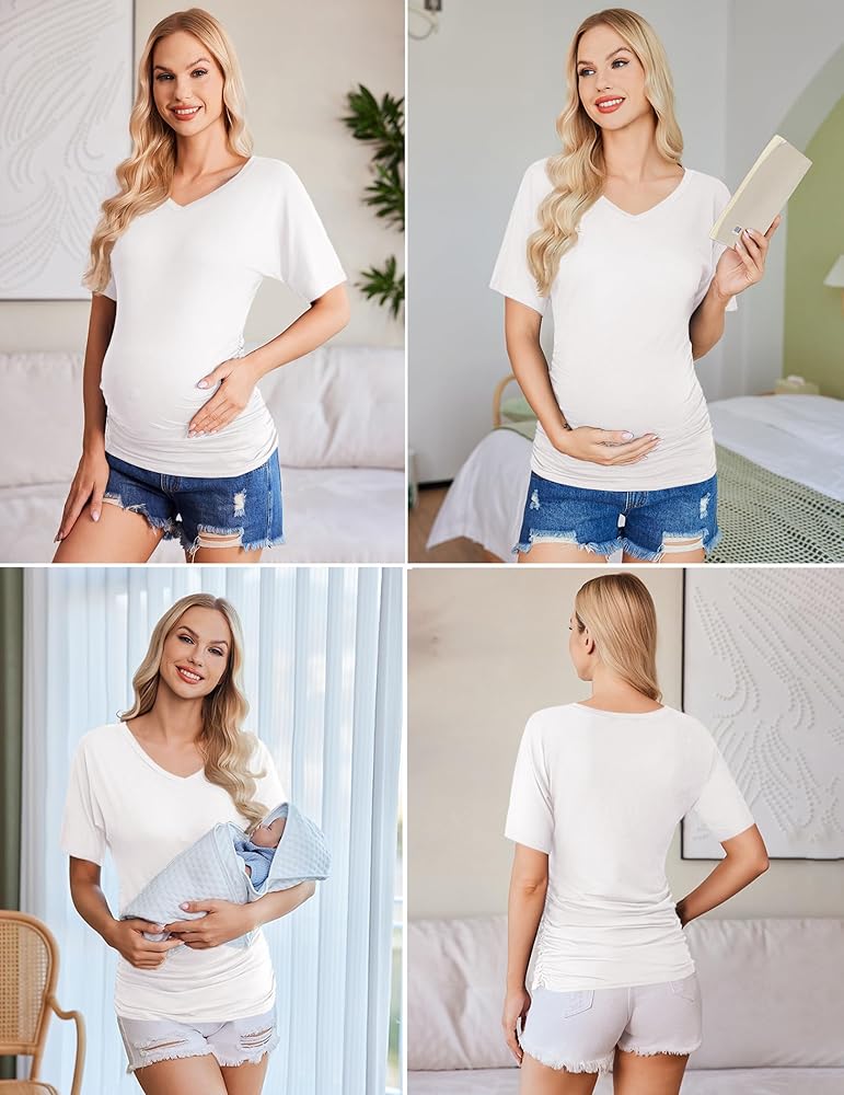الأنيقة V تصميم جانبي العنق - shirrings الجانبية من قمم الأمومة تساعد في أن تبدو الاغراء وكذلك الرقبة V. العمل على الجانبين وملاءمة قميص الأمومة بشكل مثالي! خط الرقبة الخامس مثالي وذوي الإخلاص للغاية. يمنحك قميص الأمومة على جوانب مرنة الشكل. إن قمة الأمومة على الجانبين تجعلها تتعرض للإهانة الشديدة وتحافظ على الطول مباشرة فوق الطرف الخلفي وتغطي بطن أمي.