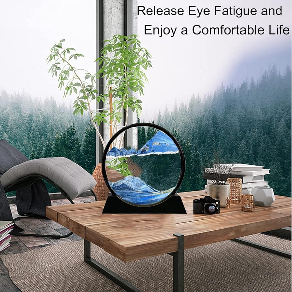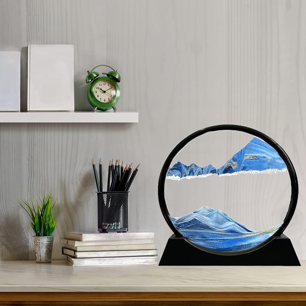 LUOLAI 12 بوصة فن الرمل المتحرك، فن رملي متحرك ثلاثي الأبعاد في أعماق البحار يخلق جوًا فنيًا للاسترخاء في المناظر الطبيعية للديكور لأي رف مكتب منزلي ورف كتب