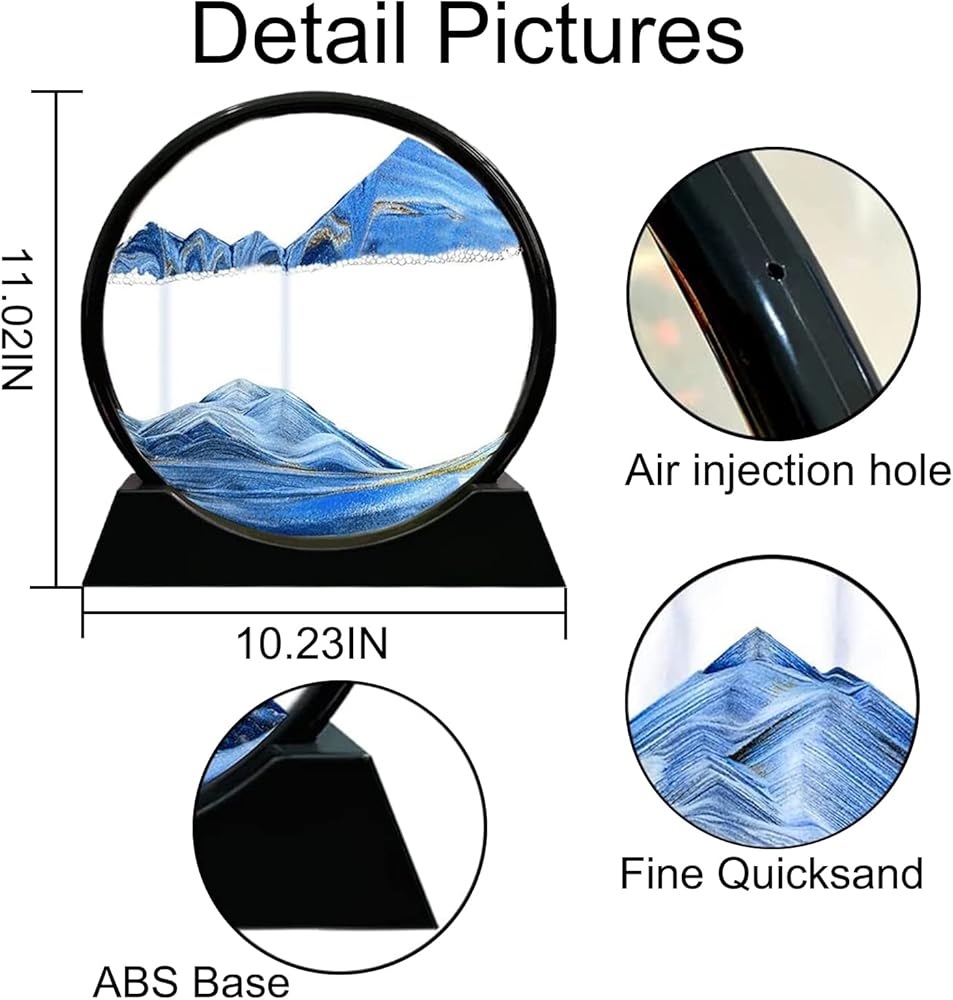 【مزين بشكل جميل】 إطار أكريليك مستدير يمتزج بشكل مثالي مع الرمال المتحركة، أنيق جدًا وجميل، بالضبط ما تحتاجه للتزيين! يمكن وضع مجموعات الفن الرملي المتحركة في المكان الذي تريده، مثالية لغرف النوم والمكاتب وغرف الدراسة. الأعمال الفنية تجعل منزلك فريدًا مع وجود تأثير هادئ، ويظهر أسلوبك الأنيق، أعتقد أنك ستستمتع بهذا الشعور.