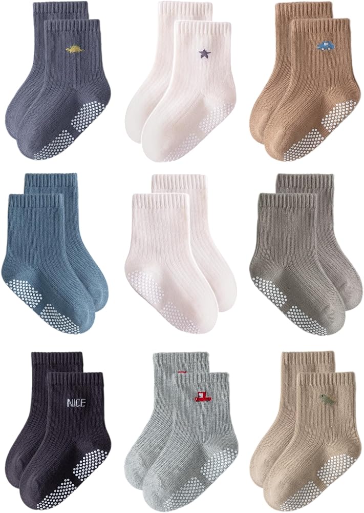 • Package includes 9 pairs of anti-slip baby socks and to easily match with multiple outfits. They are available in various sizes including 6-12 months infants, 12-36 months toddlers, 3-5 years little kids to suit your child`s growing needs