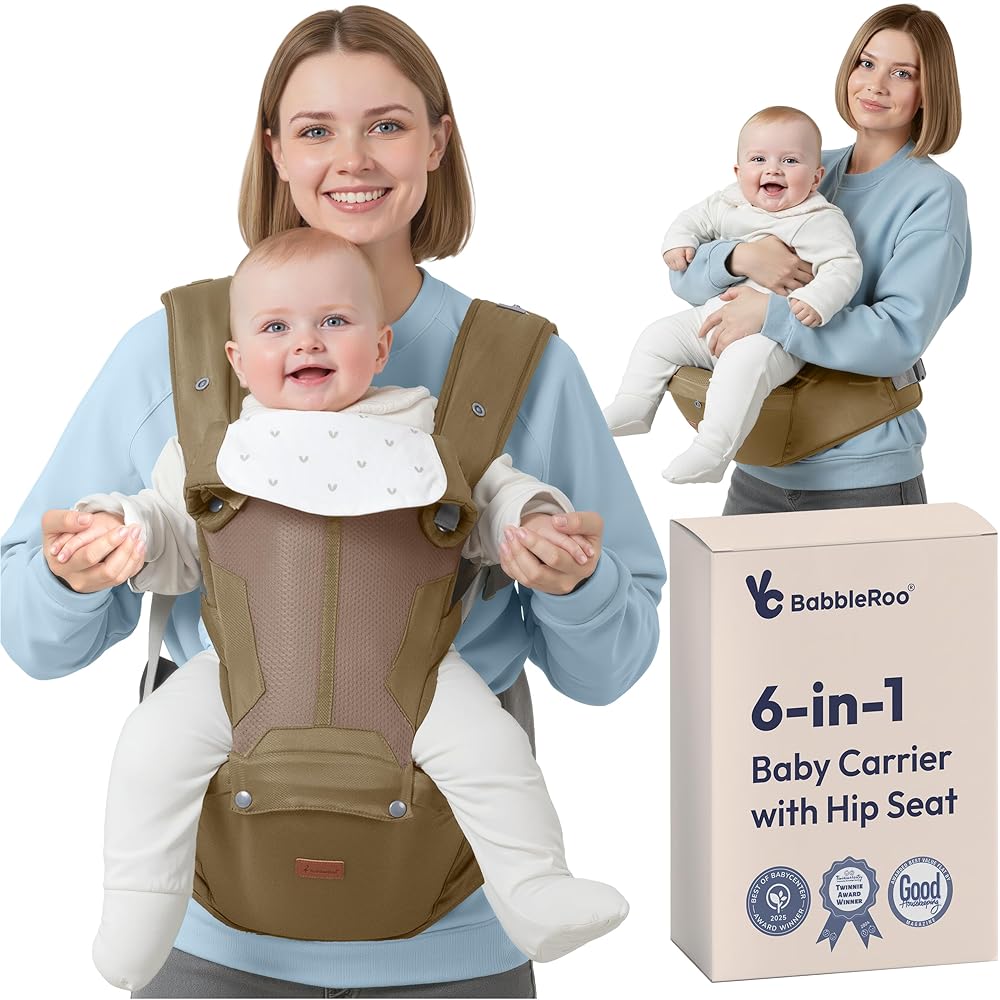 حاملة طفل Babbleroo 6-in-1 مع مقعد الورك ، وحامل صغار مريح ، ودافئ وقابل للتعديل من 7 إلى 50 رطلاً مع دعم الورك واللامبار ، وغطاء للحماية in Kuwait
