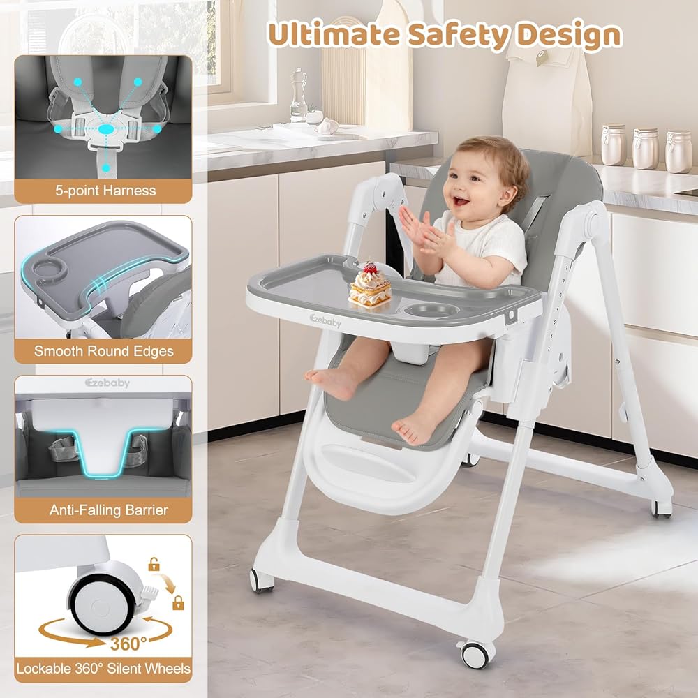 • متعدد الوظائف للراحة النهائية: مع 4 مواقع متلألئة و 3 مستويات مسند للقدمين القابلة للتعديل ، يوفر هذا الكرسي المرتفع القابل للتحويل الراحة المثلى للجلوس أو الميل أو الاستلقاء. سواء كان طفلك يأكل أو يقف أو يتعلم الجلوس ، يوفر Ezebaby الدعم الكامل ، حتى يتمكن الآباء من الاسترخاء بينما يتمتع طفلهم الصغير بوقت الوجبة.