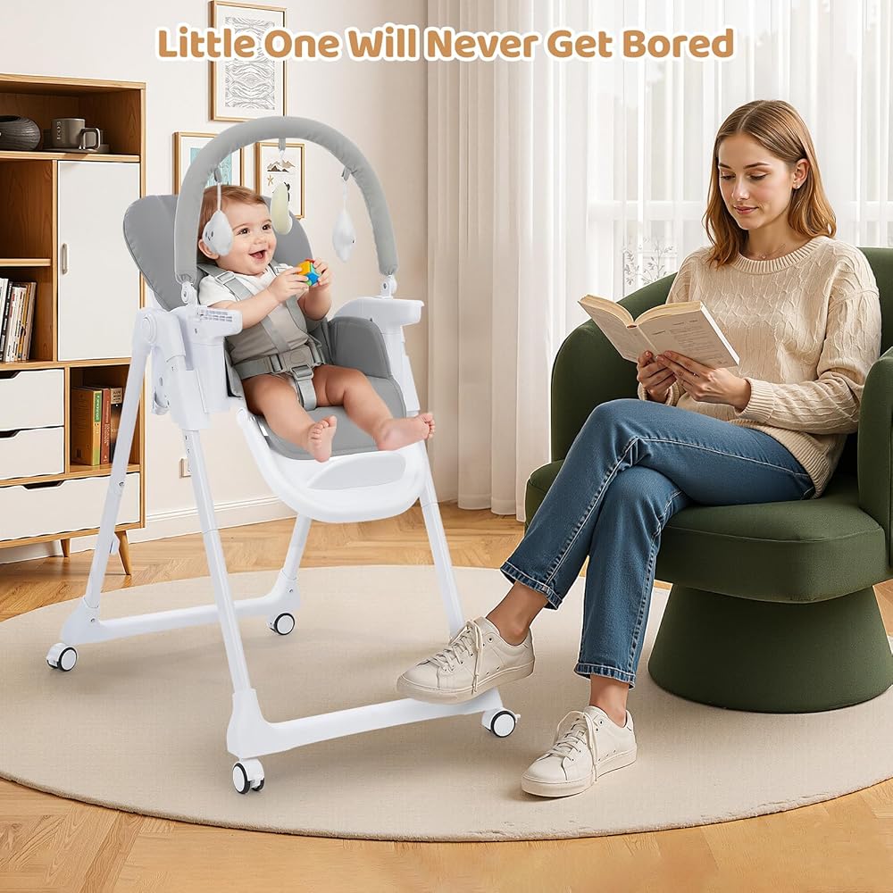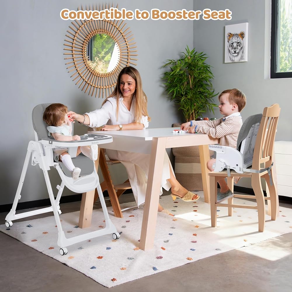 • التنقل السلس مع عجلات مدمجة: مزود بعجلتين خلفيتين صامتين ، يتحرك هذا الكرسي العالي الصغار دون عناء بين غرفة الطعام وغرفة النوم.