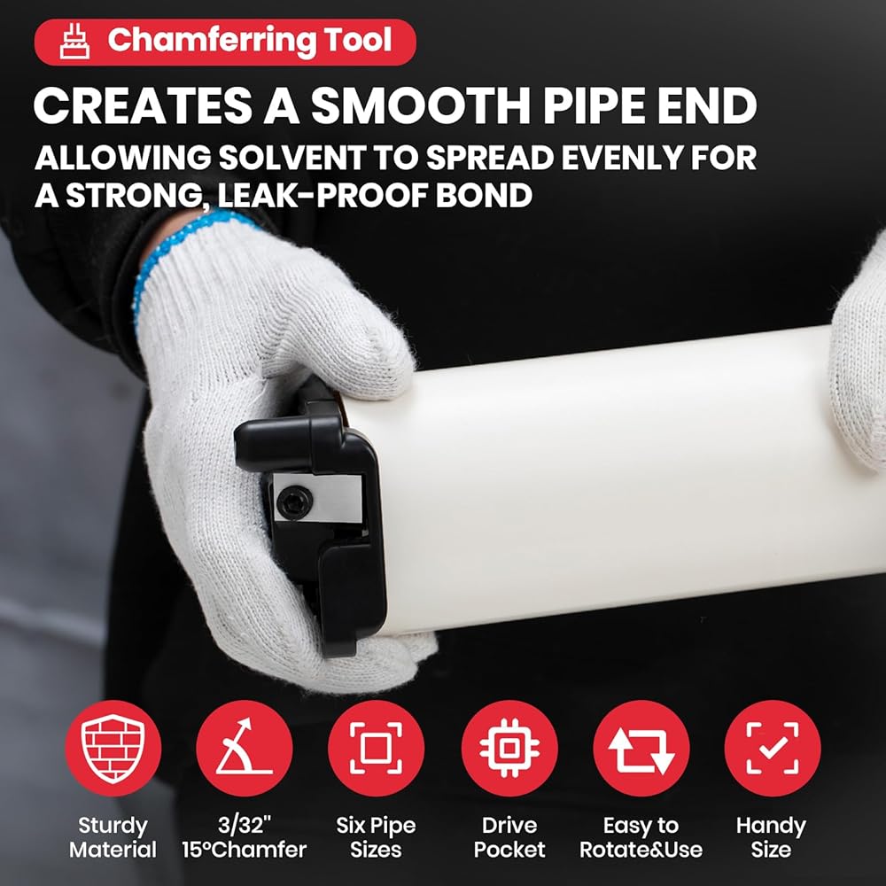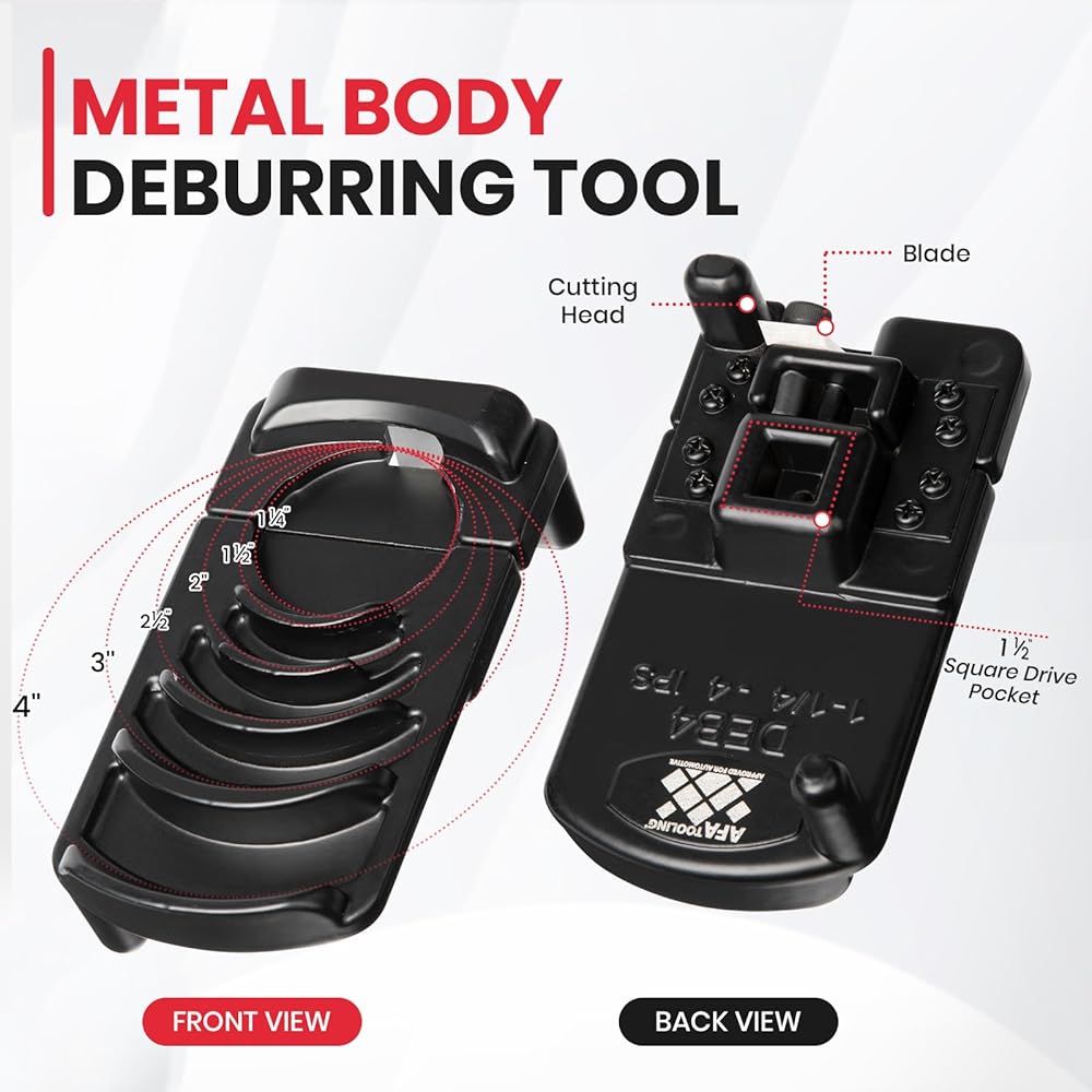 أدوات AFA - أداة Deburring Metal Body ، أداة Chamfer PVC للأنابيب البلاستيكية مع جيب محرك مربع 1/2 بوصة ، تخلق حواف مشططة بسلاسة 15 درجة ، Reamer لمدة 6 أحجام أنابيب من 1-1/4 "إلى 4" ، أداة الشطب