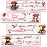 Spread Positivity with Bear Wisdom This 4-piece wooden wall decor set combines adorable Bear illustrations with timeless inspirational messages. Each 12"x3" (30x7.5cm) panel features laser-engraved artwork and uplifting text, creating warm encouragement for any child's space. Thoughtful Design Details 7mm thick natural wood with non-toxic matte finish Durable metal hanging hooks on every panel Includes all four beloved quotes from classic Bear stories Child-Safe Features ✓ Smooth rounded corners and edges ✓ Lightweight for secure hanging Perfect For: Nursery wall decoration above cribs/changing tables Baby shower photo backdrop centerpiece Kindergarten classroom motivational display Toddler room growth milestone tracker Package Includes: 4 x Wooden wall panels